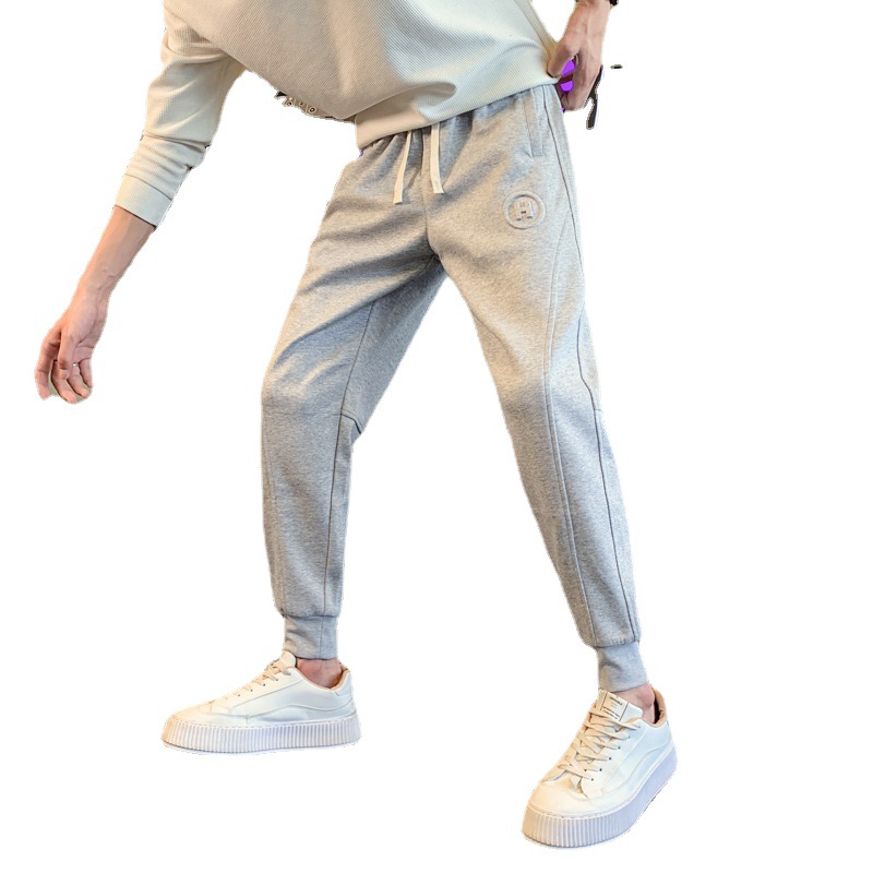 Drawstring Casual Pants Men's All-match Leg-toe Sports Pants for Autumn and Winter Trendy Solid Color All-match Sweatpants Nine-point Harem Pants