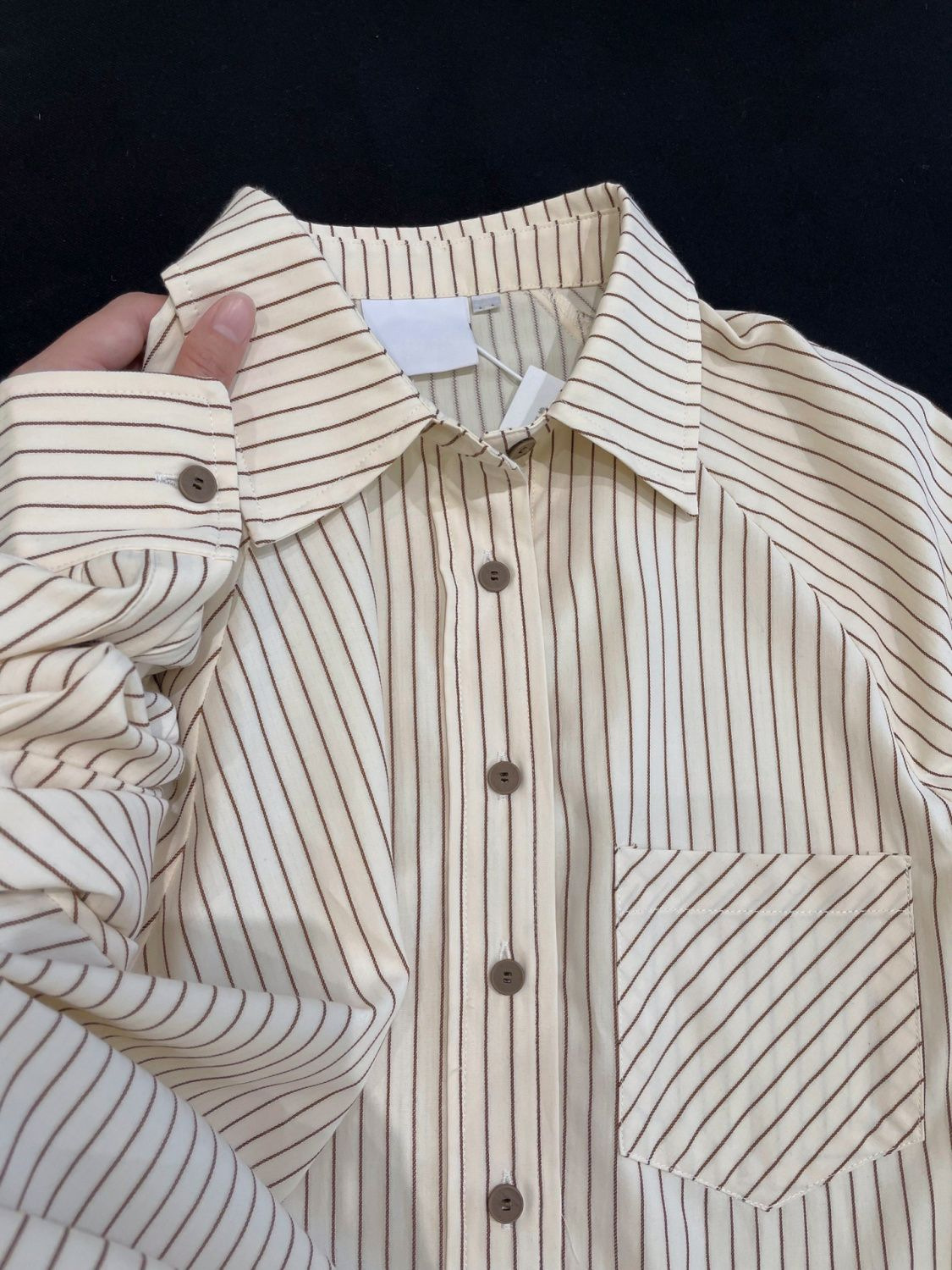 Dropshipping 2025 Spring New Vertical Stripesd Shirt Jacket Long-Sleeved Inner Shirt French Top Cardigan Trendy