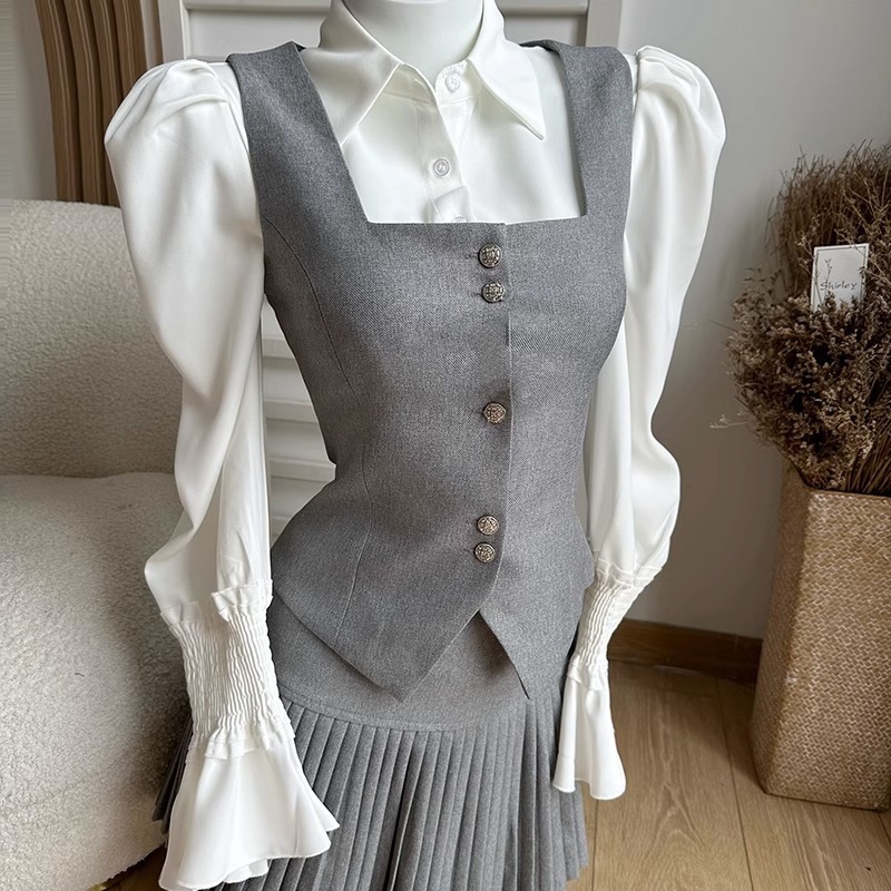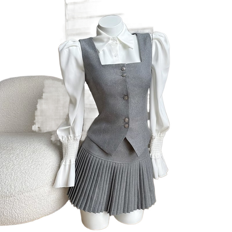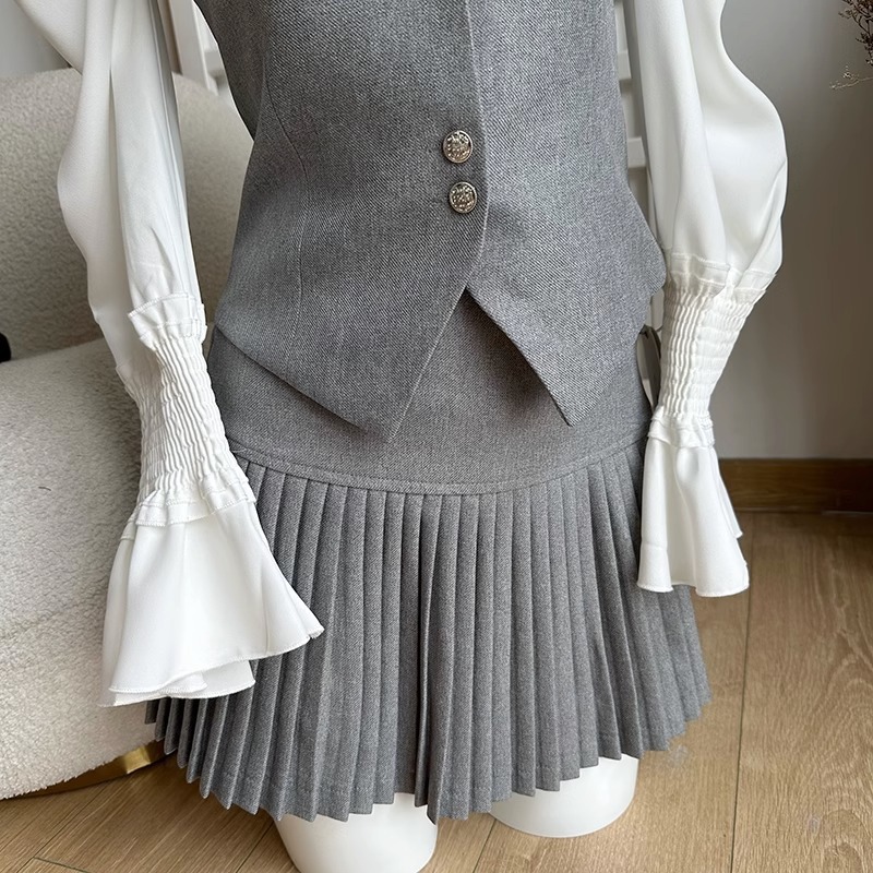 Duolaimei School Flower College Style Fashionable Vest Coat Women's Pleated Skirt Two-piece Autumn Wear Set