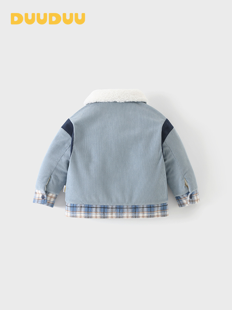 DUUDUU Dog Boy Baby Winter Embroidered Children's Cotton Clothes fleece-lined Thickened Lapel Outgoing Clothing Children's Coat