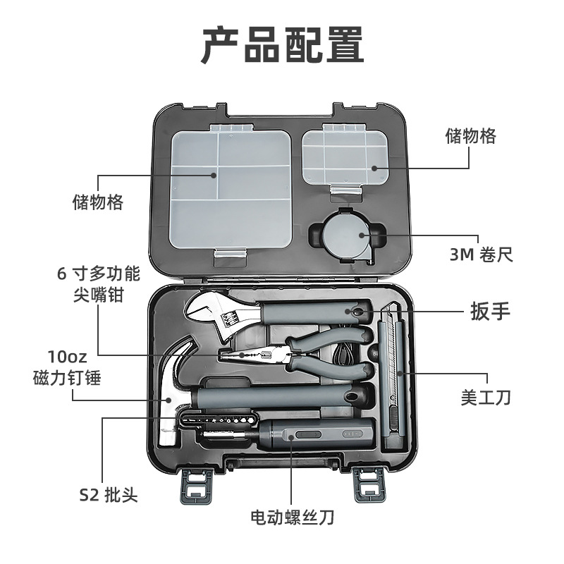 E-commerce in stock Electric hardware 17-piece storage portable toolbox high-end home gift tools suit