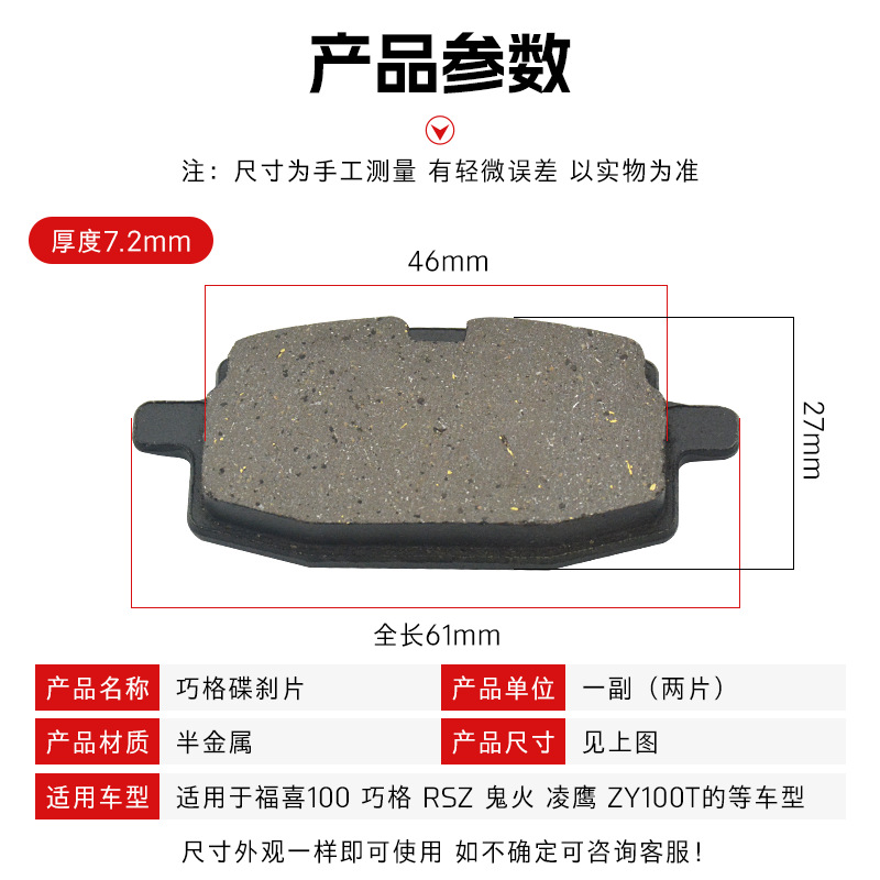Electric motorcycle JOG Fuxi qiaoge jack-o'-lantern RSZ Lingying ZY100 disc brake pad brake friction leather block