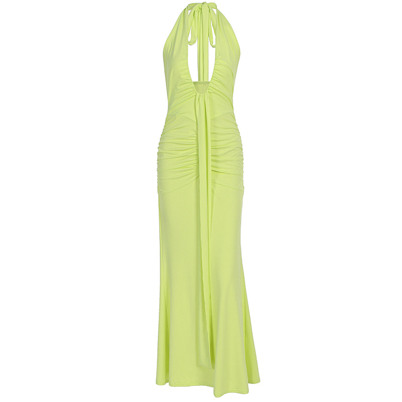 Elegant Resort-Style Backless Halter Neck Bodycon American Dress for Women 2025 Summer New Cross-Border European and American Style Women's Clothing
