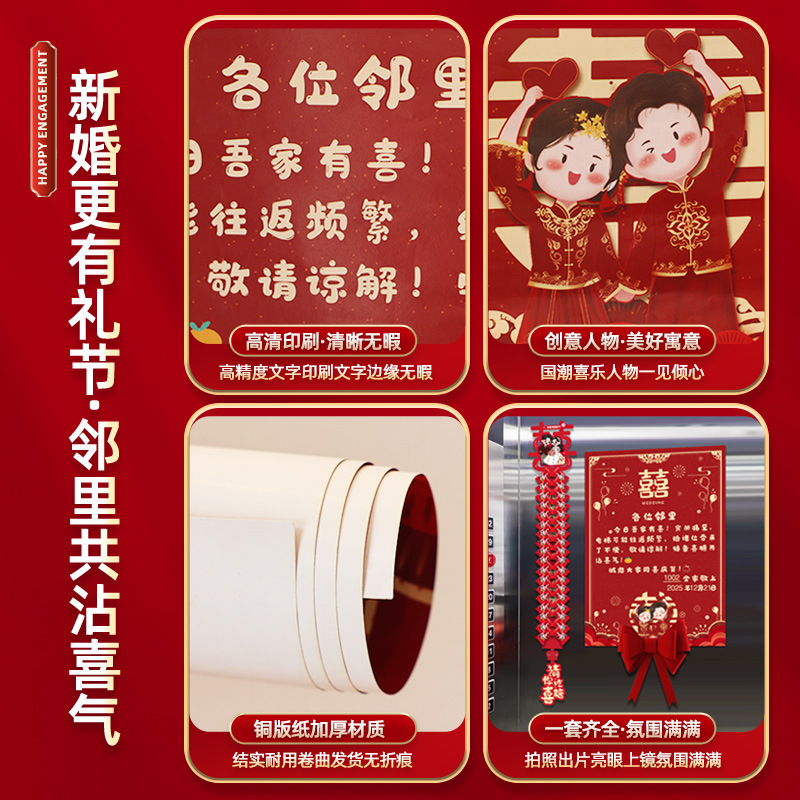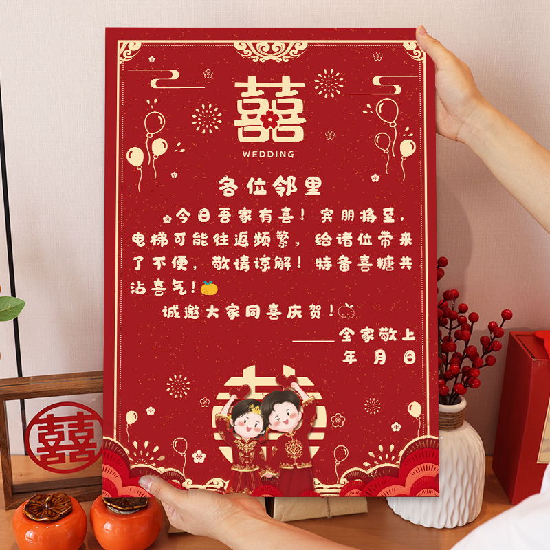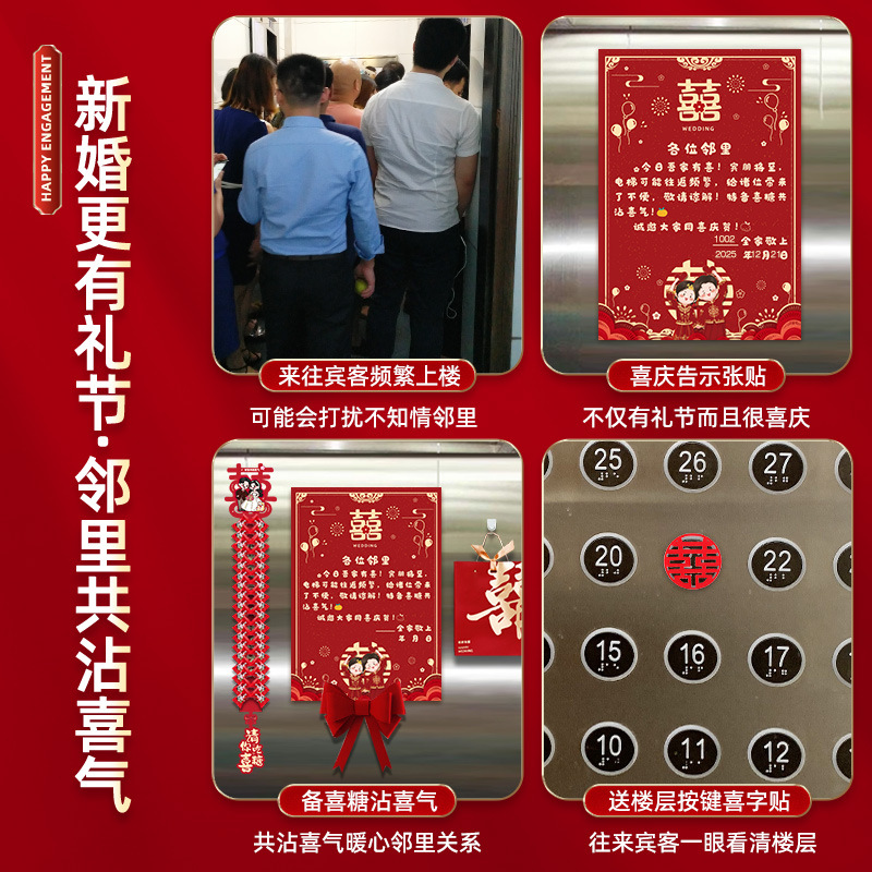 Elevator Wedding Notice Wedding Candy Notice Sticker Paper Decoration Engagement Wedding Supplies Daquan Happy Word Special Community Layout