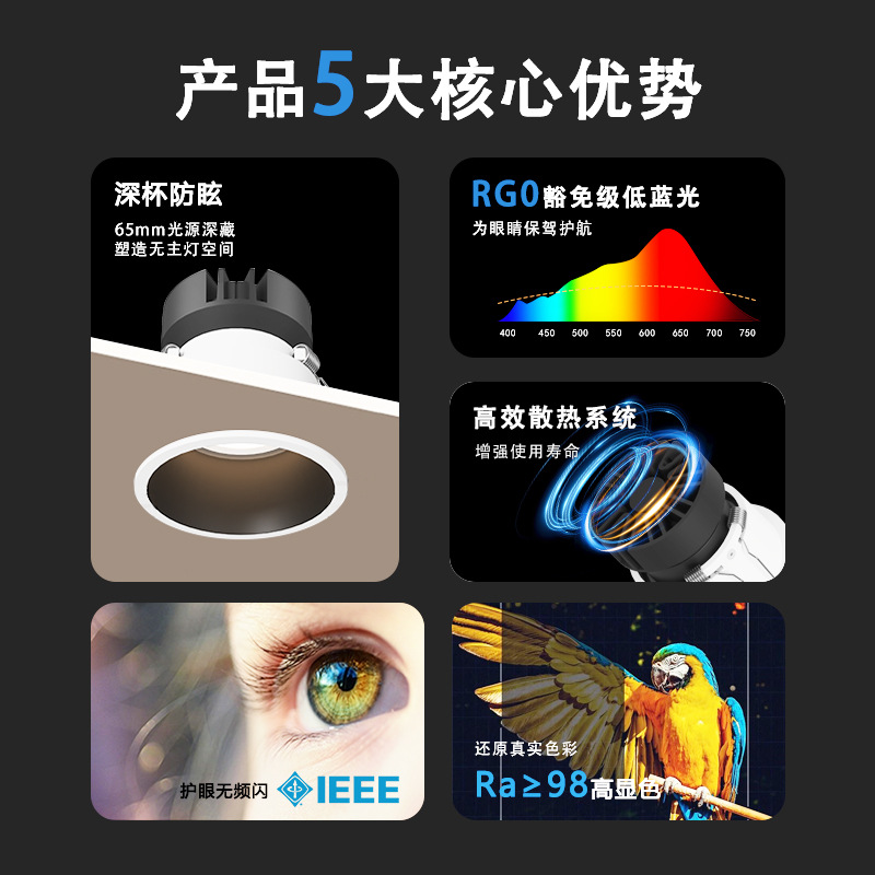 Embedded spotlight hill eye protection anti-glare full spectrum led downlight home living room cob Zhongshan smart light