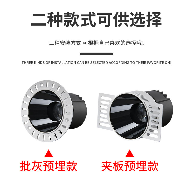 Embedded Spotlight Hill Pre-Embedded Frameless Spotlight Home Anti-Glare Full-Spectrum Spotlight Smart Downlight Without Main Tube