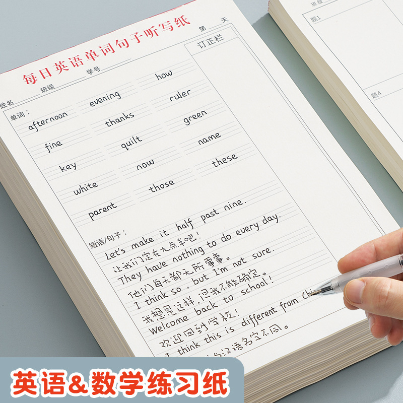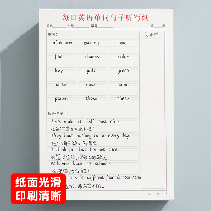 English dictation paper words and sentences dictation book English-Chinese translation exercise book English dictation book Primary School junior high school senior high school