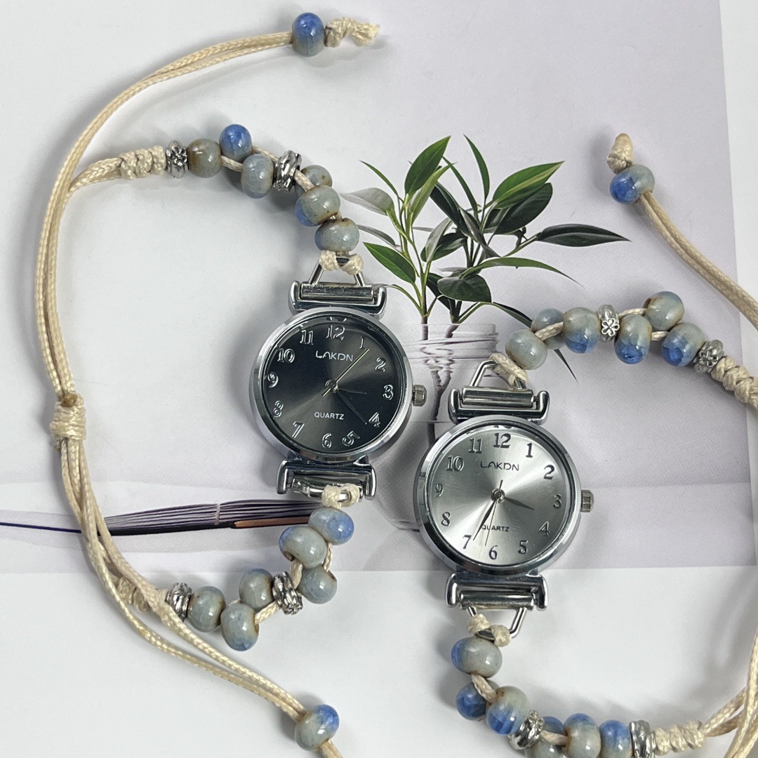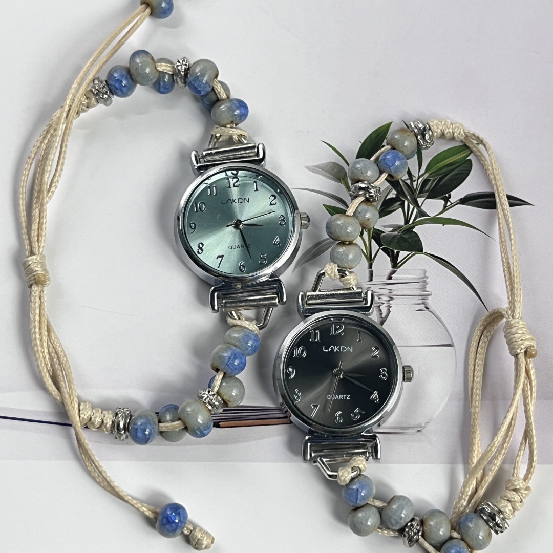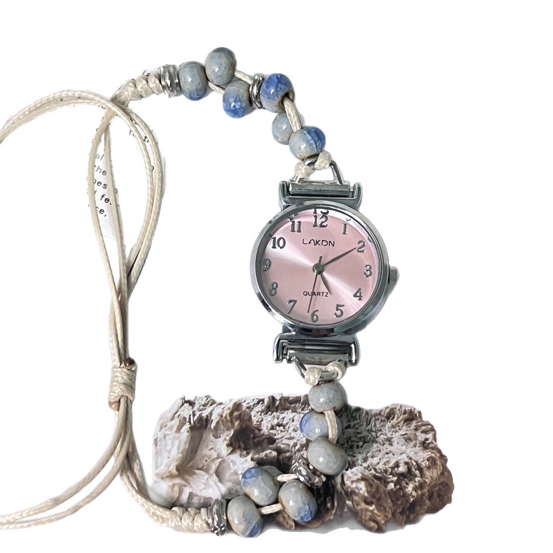 Ethnic Style Braided Rope Beaded Bracelet Watch for Women, Junior and High School Students Ins Niche Forest Retro Hand Jewelry Elegant