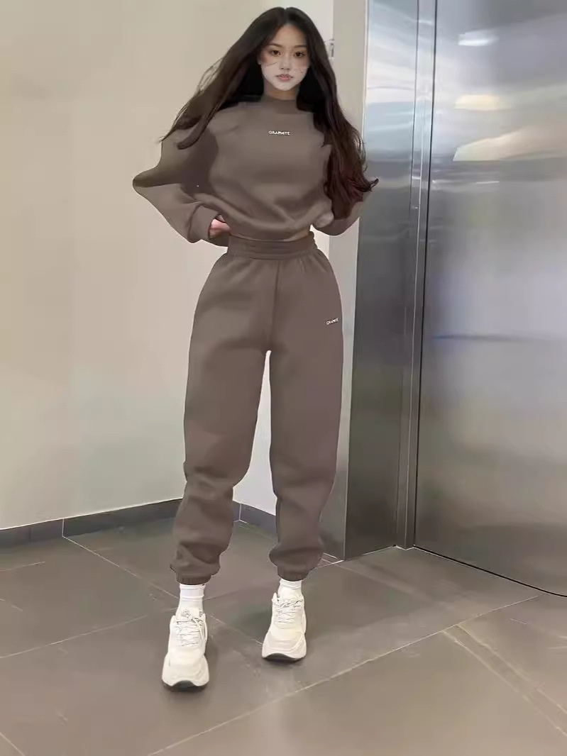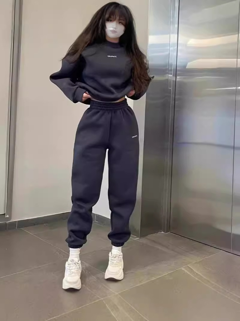 European and American 2024 Cross-Border Embroidery Amazon Fashion Versatile Embroidered Slim-Fit Casual Sports Sweatshirt Two-Piece Set