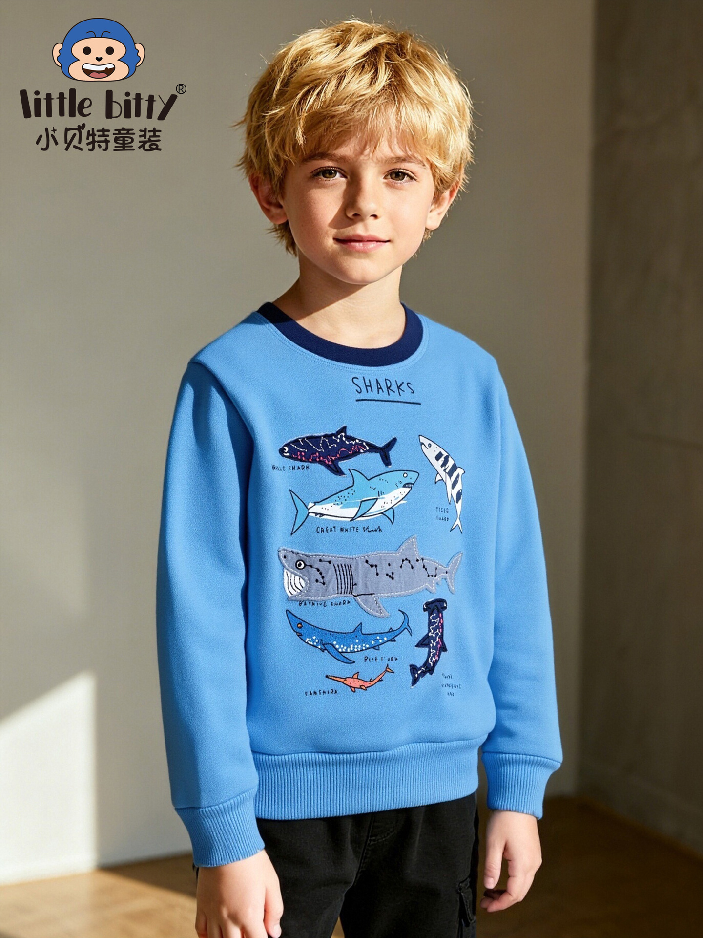 European and American 2025 Autumn and Winter New Baby Boy and Kidsren's Sweatshirt Round Neck Pullover Casual Cotton Embroidered Sweatshirt Cute Boy