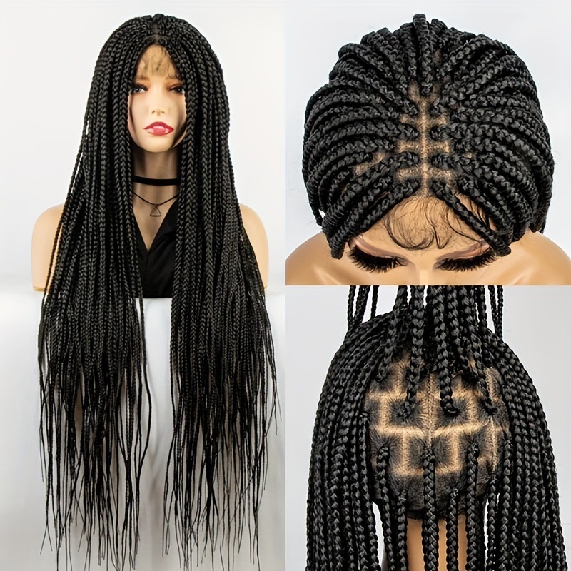 European and American cross-border braid wig with baby hair full lace wig synthetic hair braid wig three-strand braid hair
