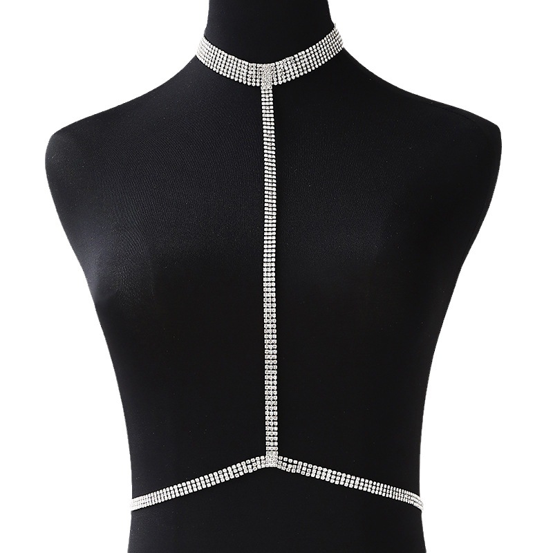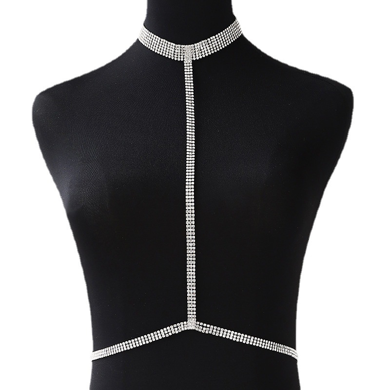 European and American Cross-border Fashion Personality Bikini Body Chain Women's Sexy Rhinestone Multi-row Long Necklace Waist Chain Body Chain