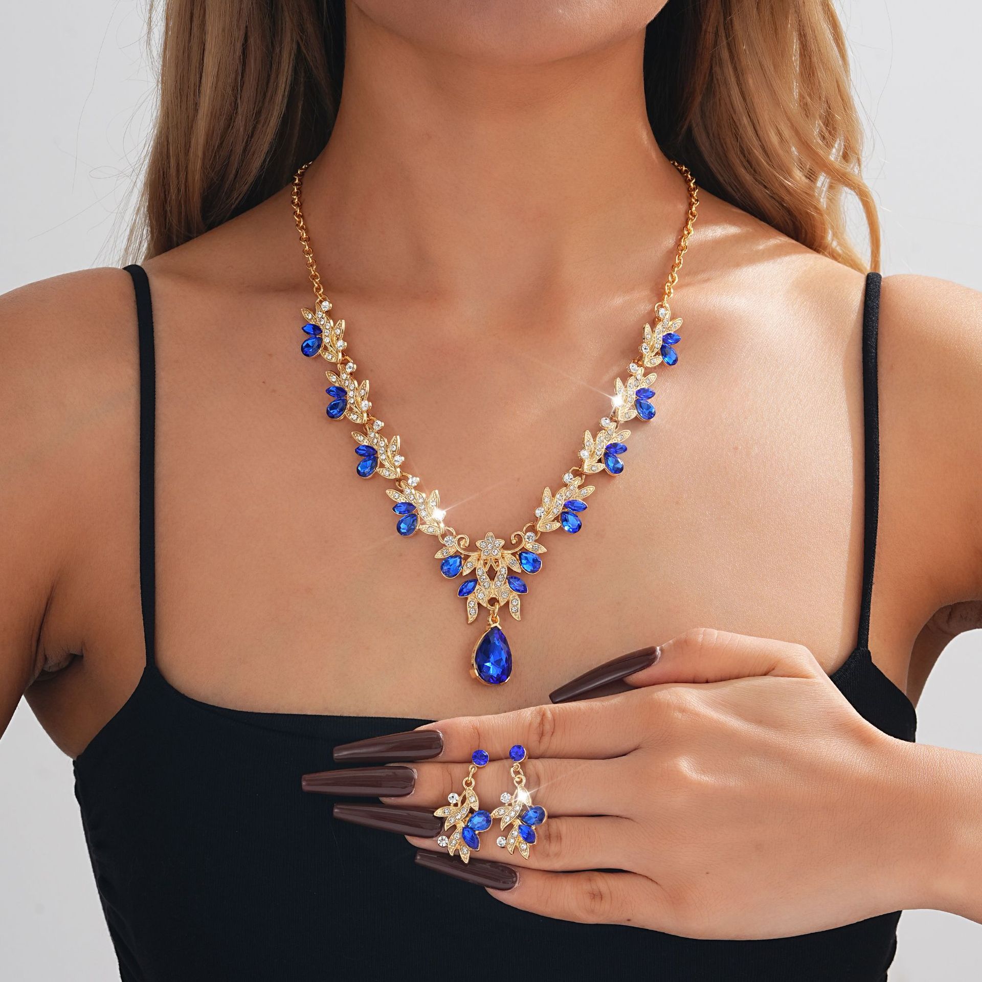 European and American Cross-Border Popular Fashion Light Luxury Necklace and Earrings Two-Piece Set Bridal Wedding Accessories Dress Set Women Wholesale