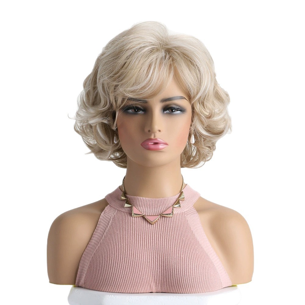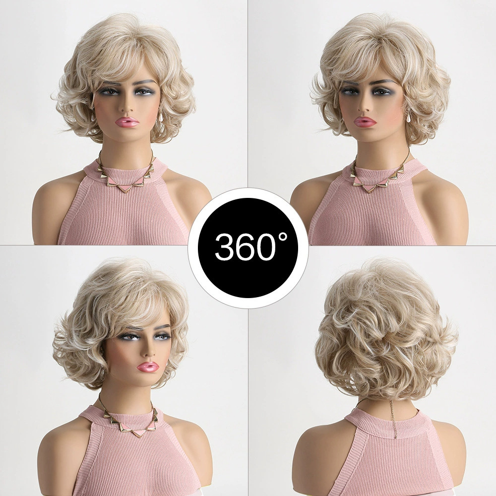 European and American Cross-Border Women's Wig with Oblique Bangs, Short Curly Hair, Fluffy Chemical Fiber Hair, Female Light Golden Synthetic Wig Headgear