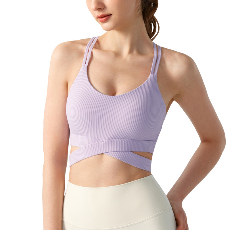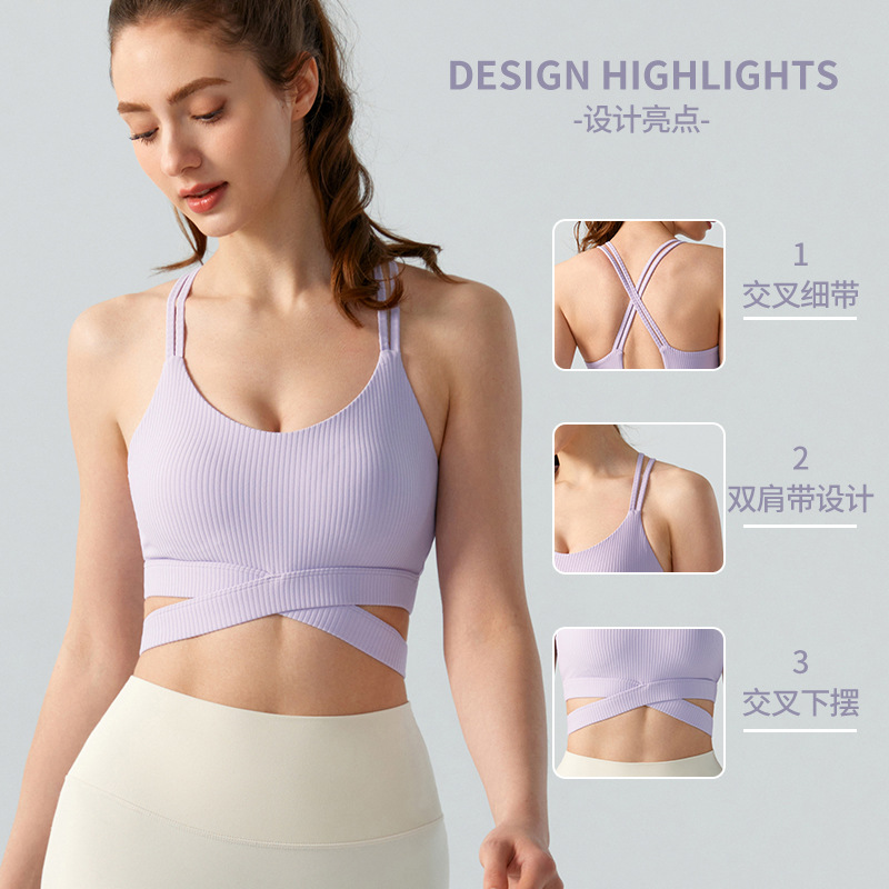 European and American Double Shoulder Strap Sports Vest Women's Fitness One Cup Sexy Breathable Cross Beauty Back Slim Yoga Top