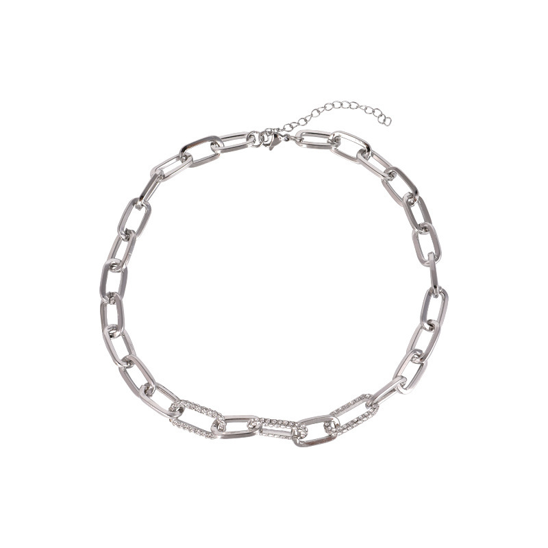 European and American Exaggerated Large Thick Chain Metal Decorative Necklace Women's Trendy Ins Short Clavicle Chain Flash Diamond Splicing Sweater Chain
