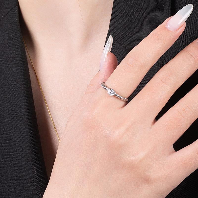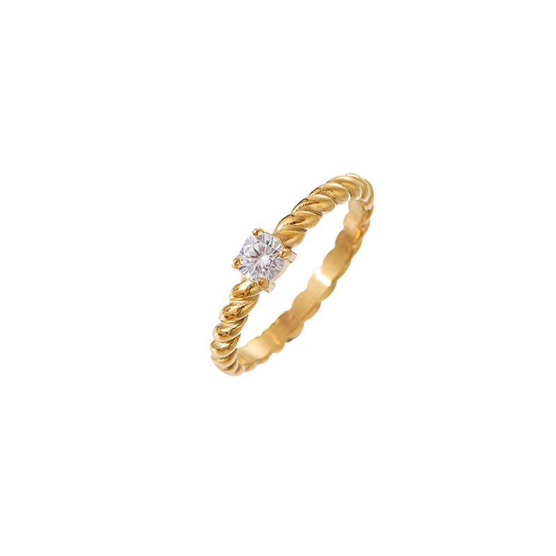European and American fashion new twist inlaid zircon claw diamond ring light luxury all-match titanium steel ring for women