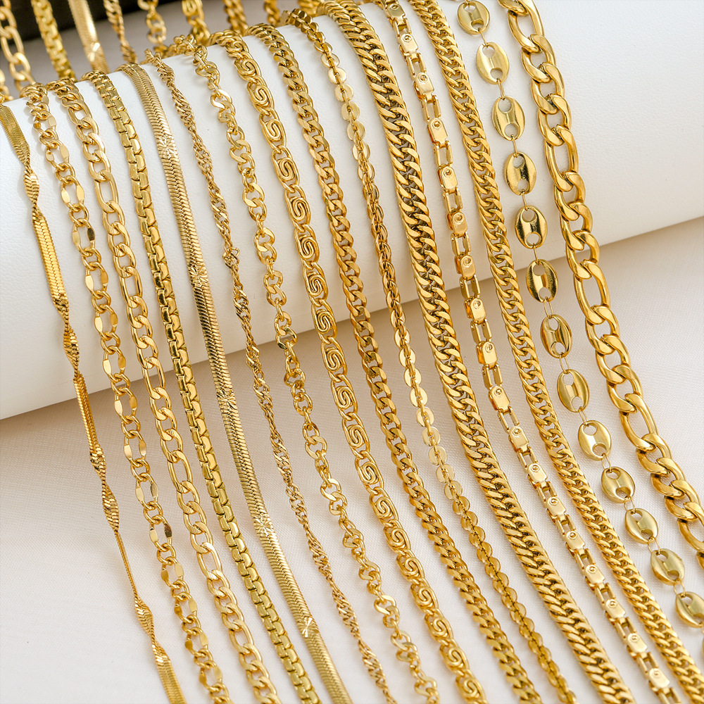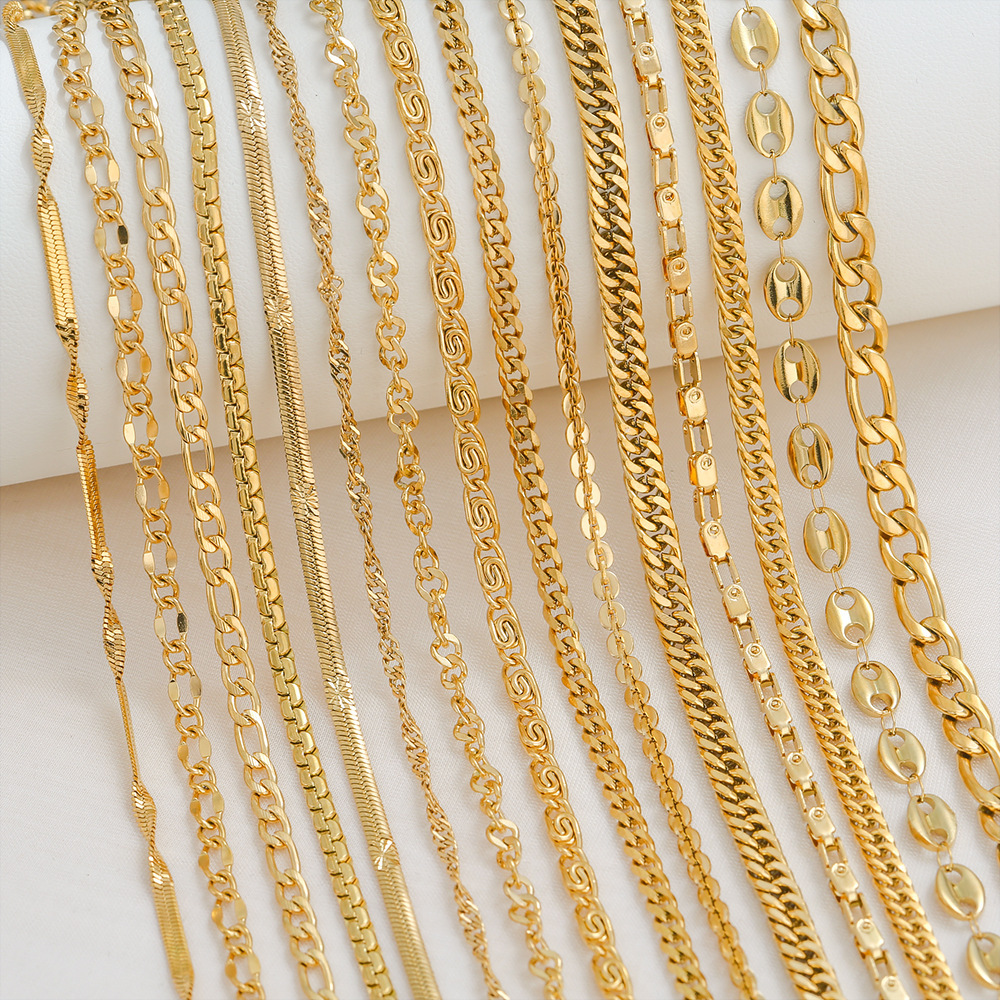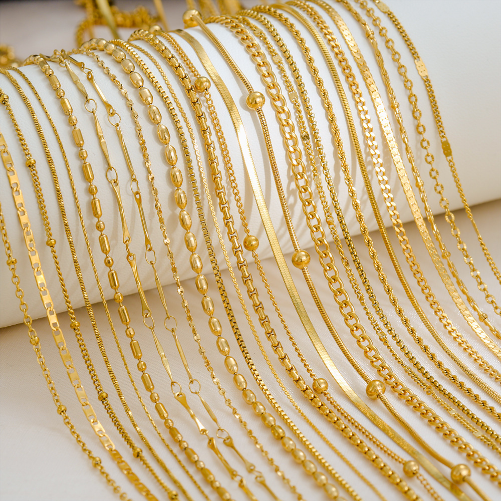 European and American fashion simple titanium steel base plain chain jewelry stainless steel plated 18K blade chain box chain necklace women