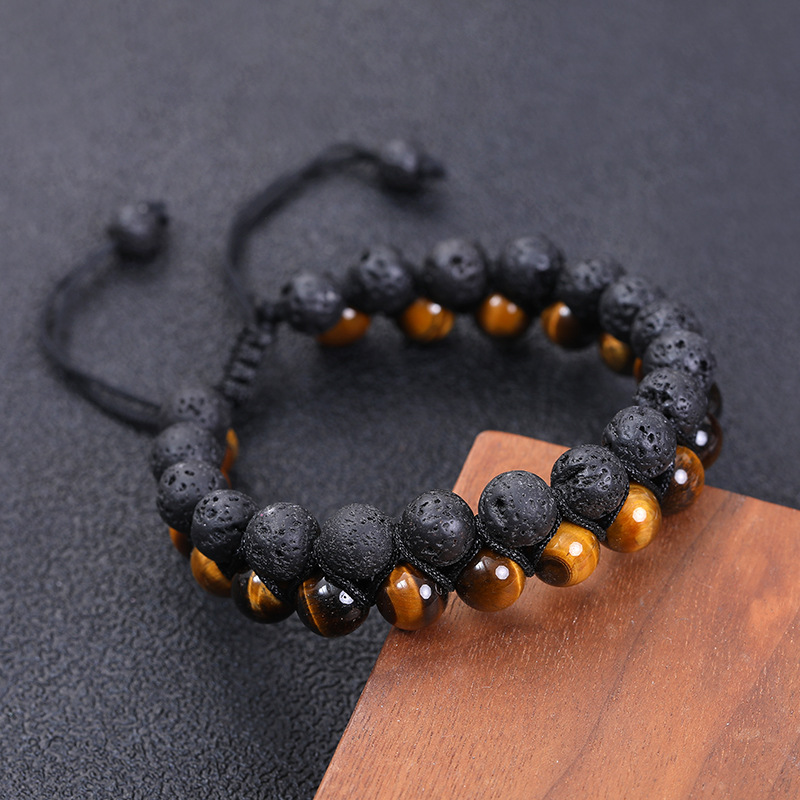European and American Hot-Selling Fashionable and Simple Men's and Women's Exquisite Double-Row Yoga Tiger Stone Natural Beaded Bracelets Directly Supplied by the Manufacturer
