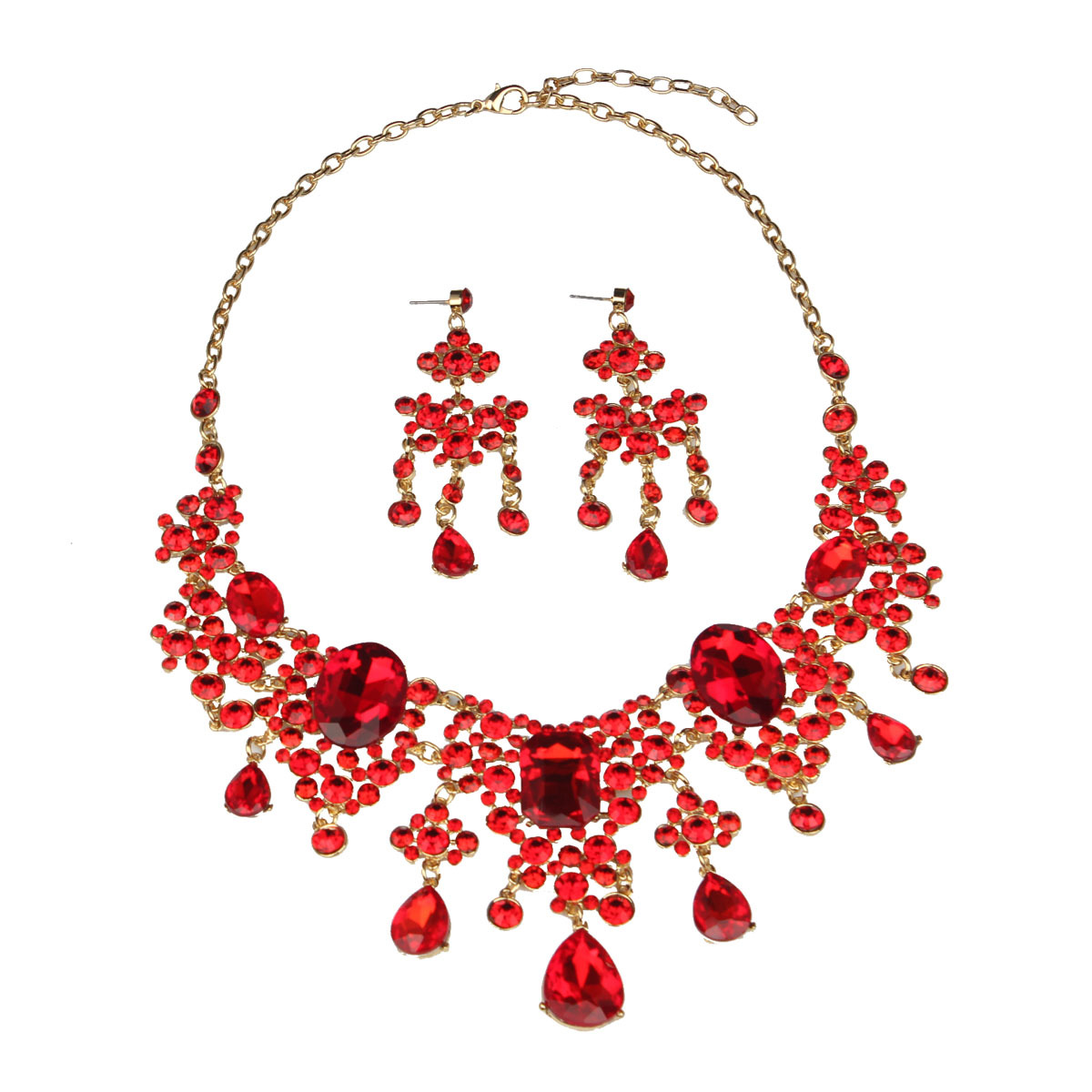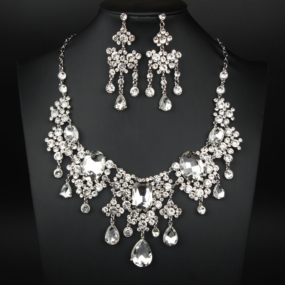 European and American Internet Celebrity Luxury Exaggerated Elegant Rhinestone Large Necklace Earrings Set Female Bridal Dress Banquet Accessories