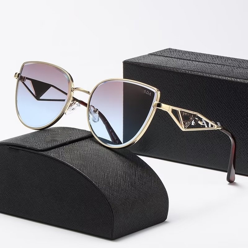 European and American Large-Frame Fashionable Outdoor Metal Frame Sunglasses for Men and Women for Taking Photos and Driving, Without Case, Pc Lenses, Oval 8013