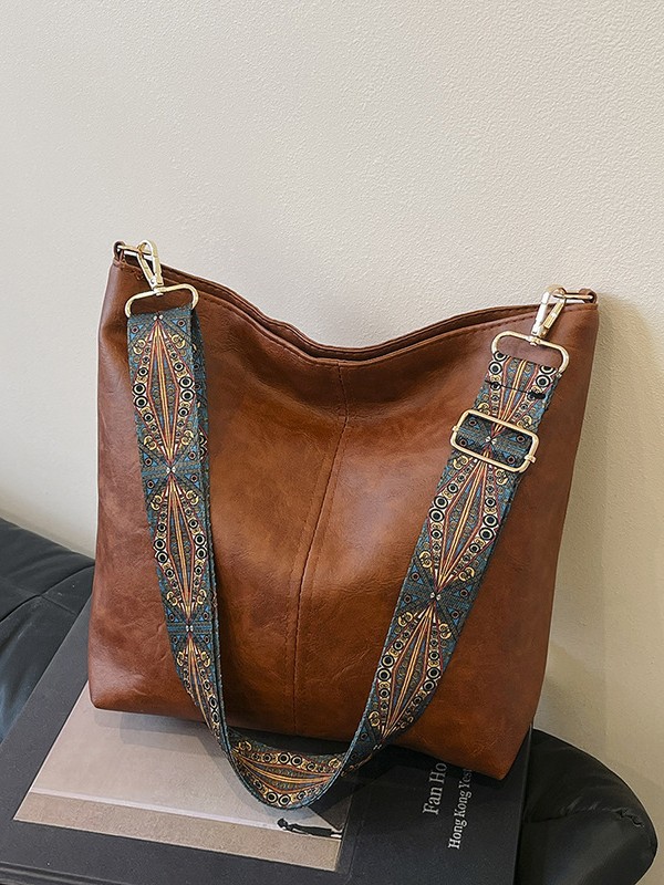 European and American New Fashion Handbag, Shoulder Bag, Crossbody Large Capacity Bucket Bag, Solid Color Pu Women's Bag, In-Stock Street Trend