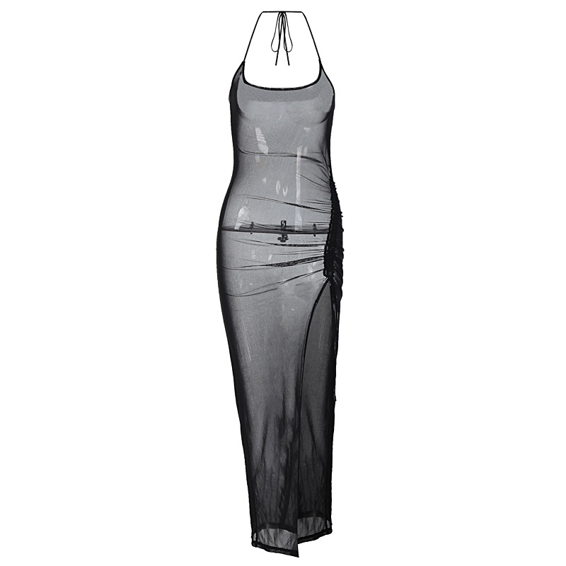 European and American style foreign trade women's clothing 2025 summer new mesh sexy perspective split slim dress wholesale generation