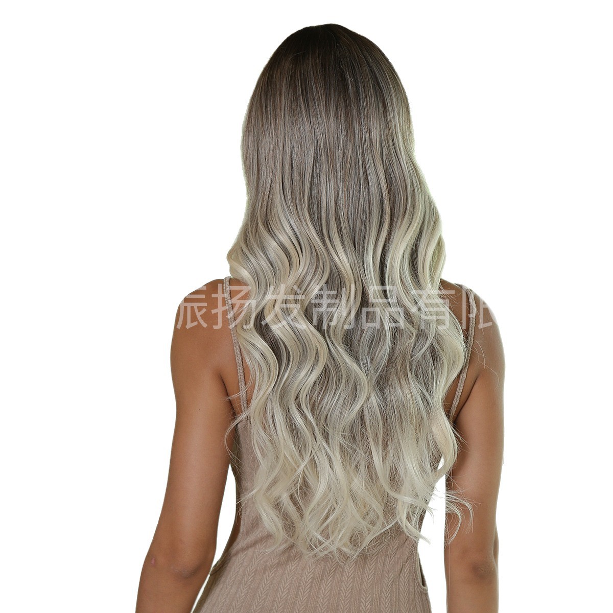 European and American style gradient wig Black Gradient Golden fringe long curly hair big wave synthetic chemical fiber wig head cover