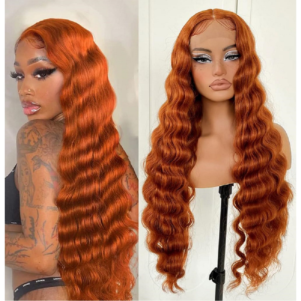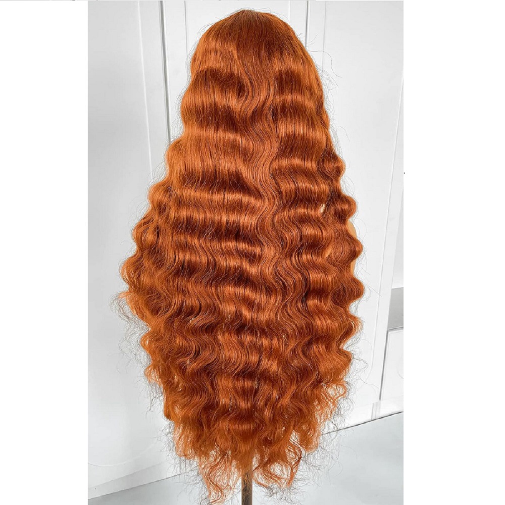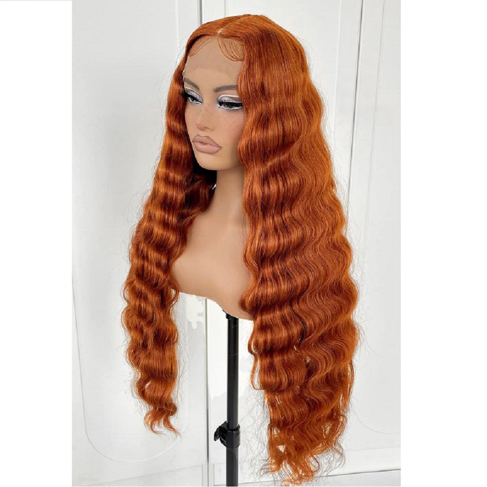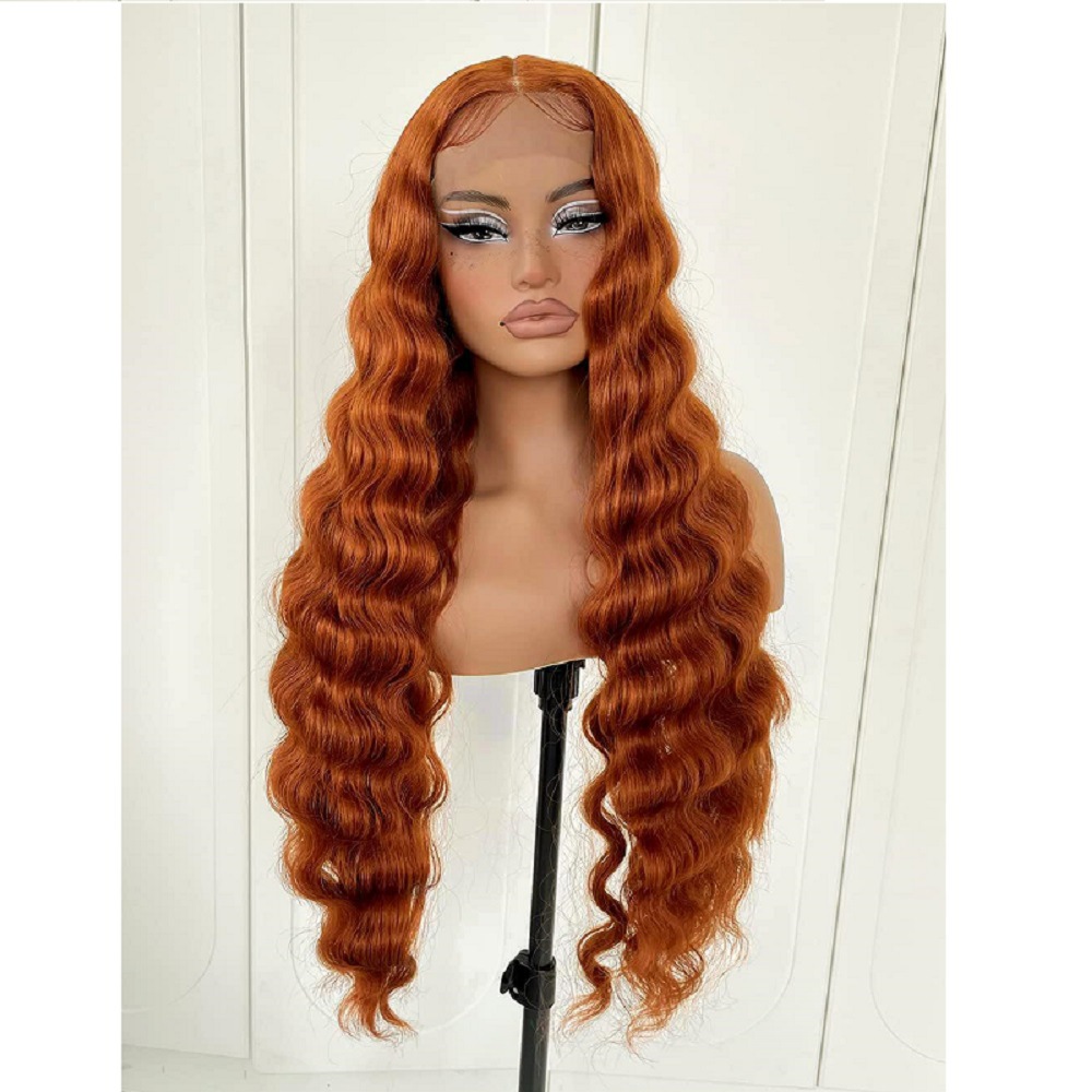 European and American wig women's front lace wig orange wavy synthetic wig cross-border wholesale one-piece delivery