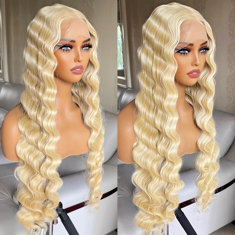 European and American wigs women's long front lace 613 golden wavy curly synthetic wigs cross-border manufacturers wholesale generation