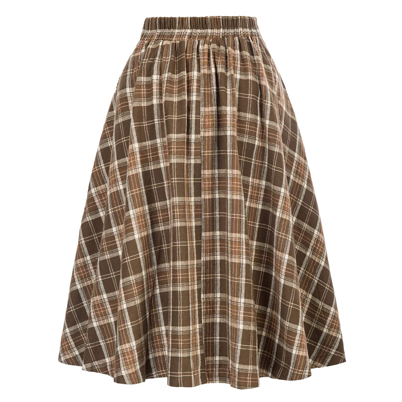 European and American wish foreign trade high waist plaid large swing skirt autumn and winter fashion women's plaid elastic waist A- line skirt