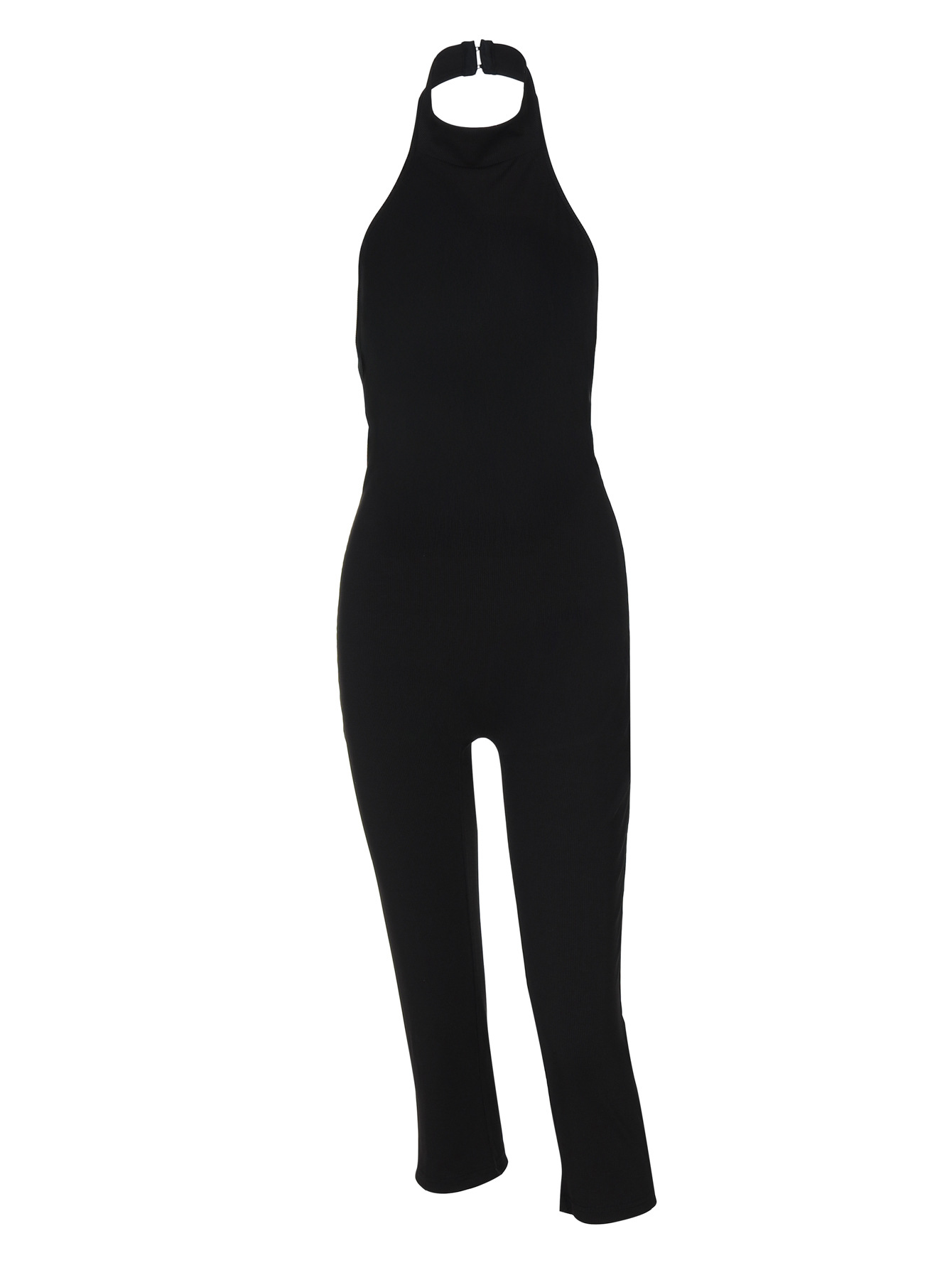 European and American Women's 2025 Summer Amazon New Solid Color Sleeveless Neck Backless Sexy Slim Fit Jumpsuit Wholesale