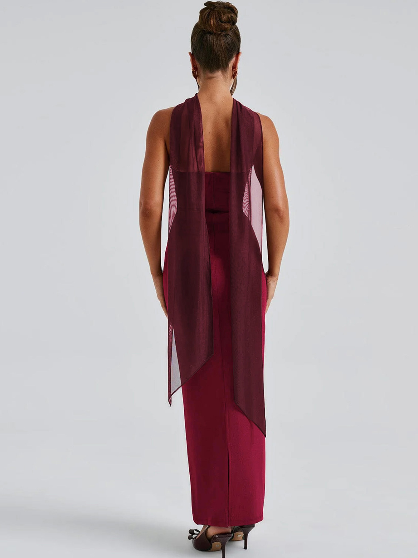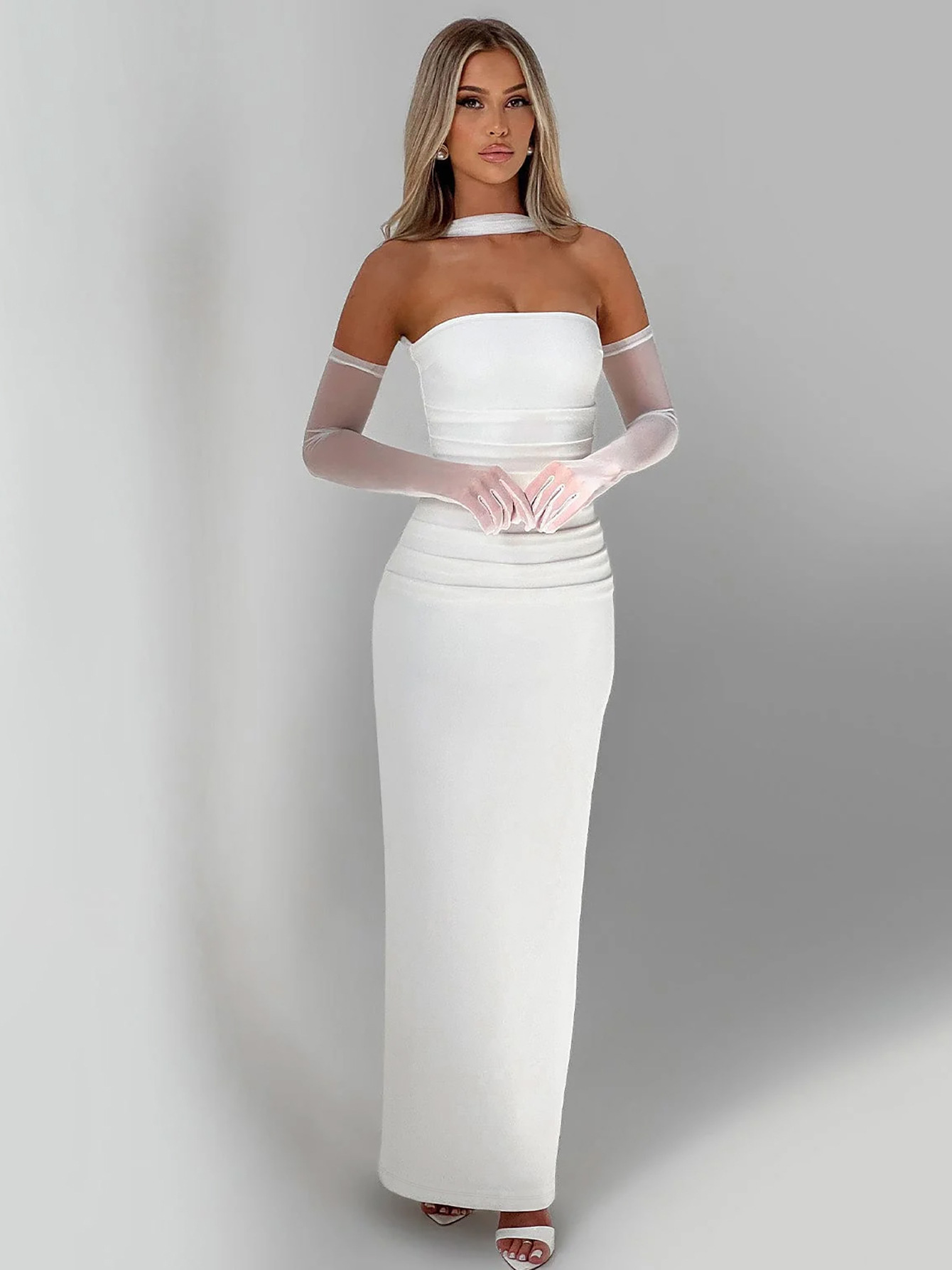 European and American Women's Clothing 2025 Summer New Fashion Sexy Elegant Tube Top Dress Mesh Sleeve Dress Women's Wholesale Trend