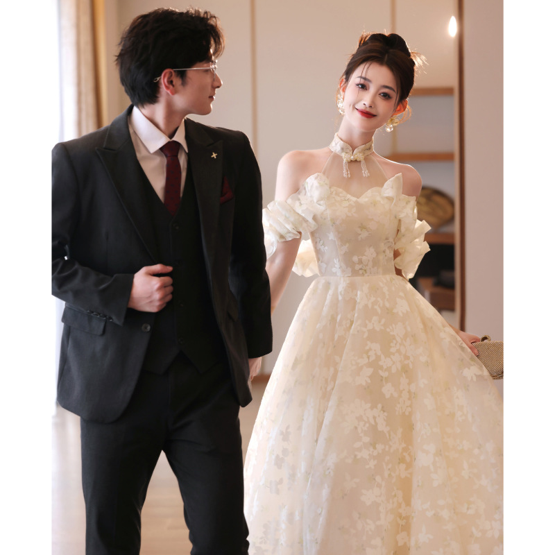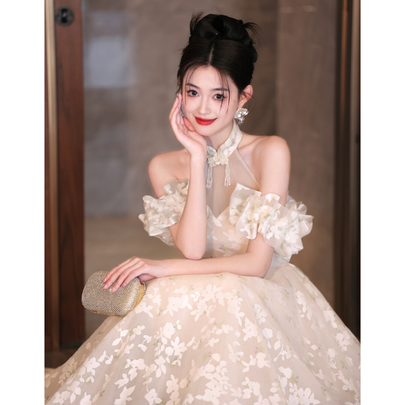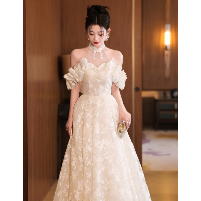 Evening Dress Classy Accessible Luxury Niche Light Wedding Dress Halter One Shoulder Women's 2025 New Classy Vocal Music Art Test
