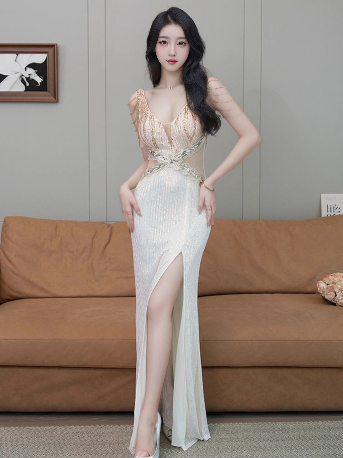 Evening Dress for Women, Banquet Style, Light Luxury, Niche, Shiny, High-End, Elegant, Sophisticated, Suitable for Hosting Annual Parties