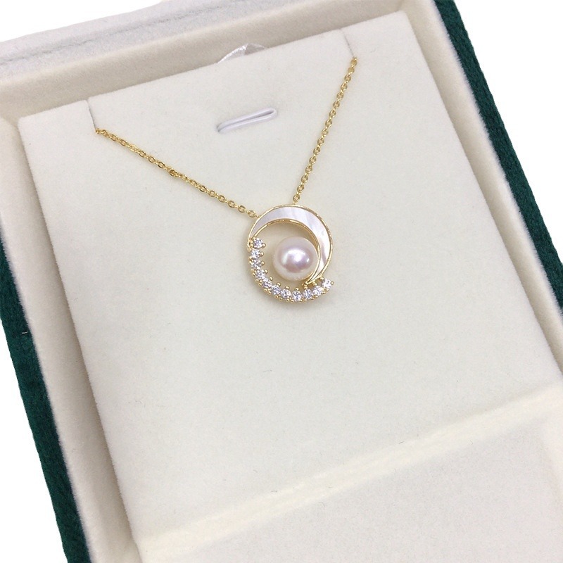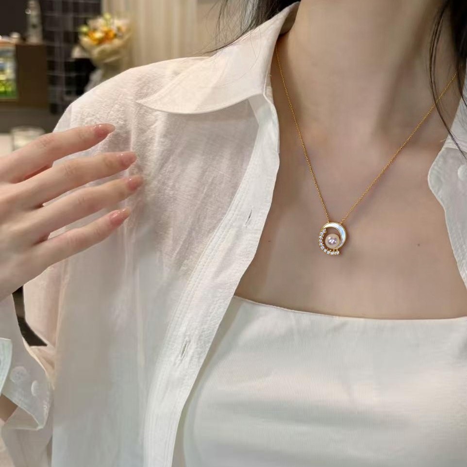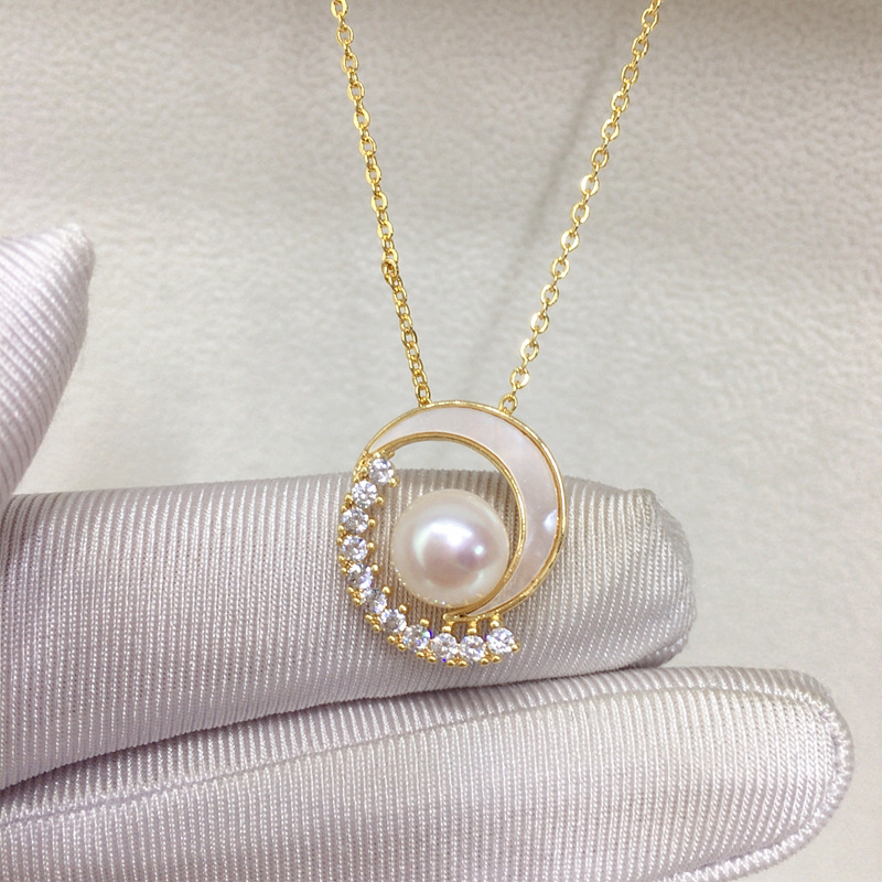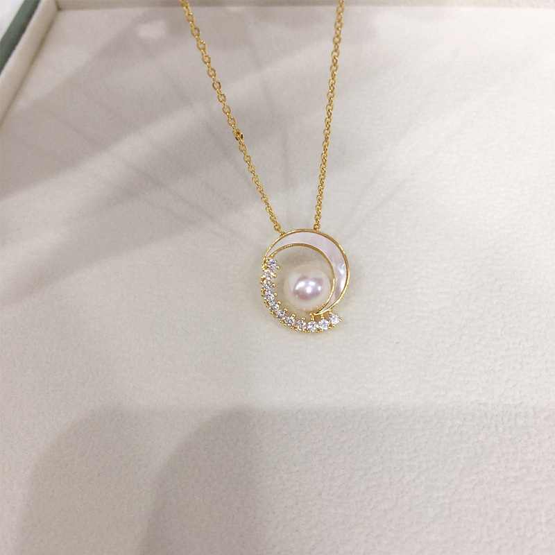 Exquisite K Gold Craft Natural Freshwater Pearl Necklace Natural Sea Shell Fritillaria Star Moon Pearl Pendant Live Wholesale