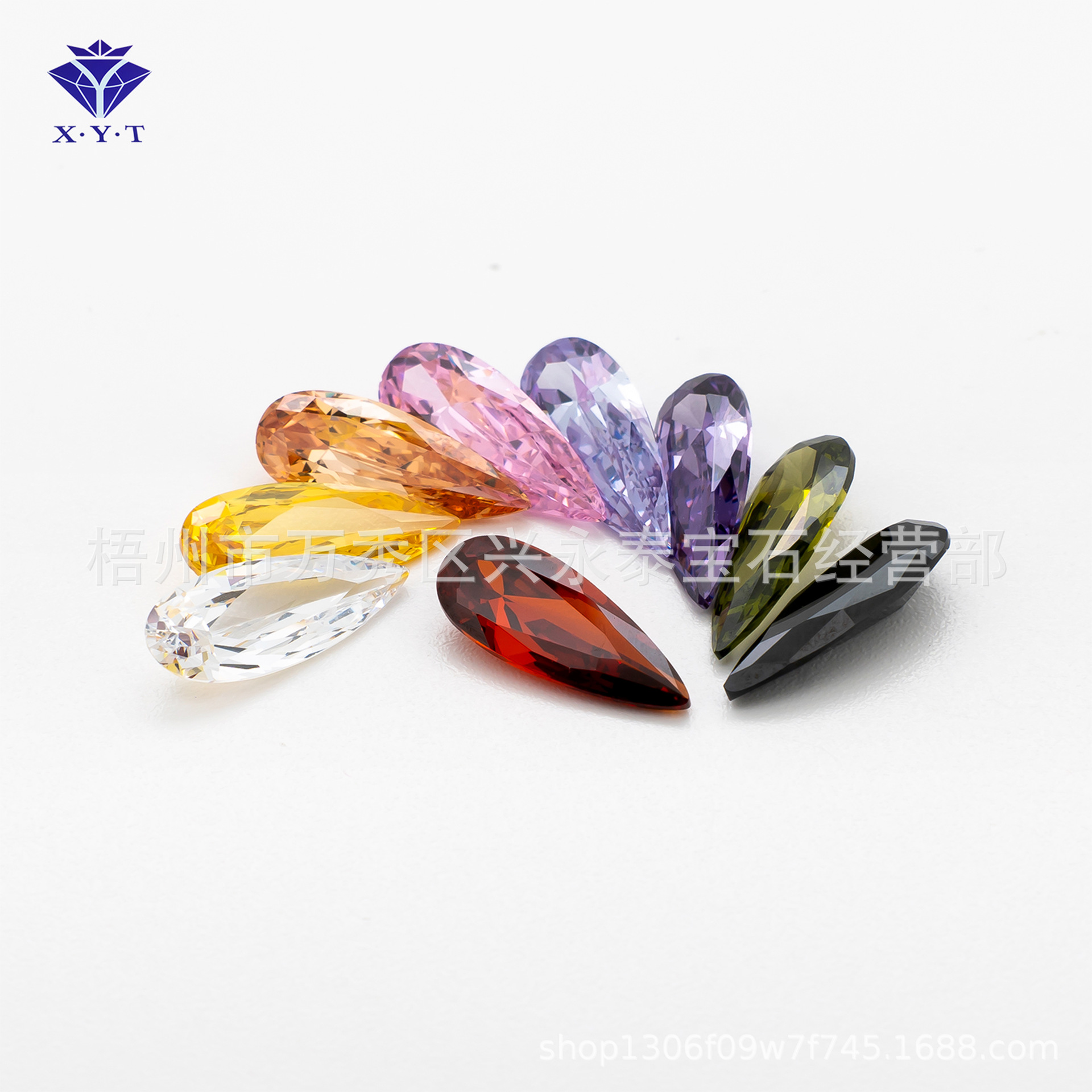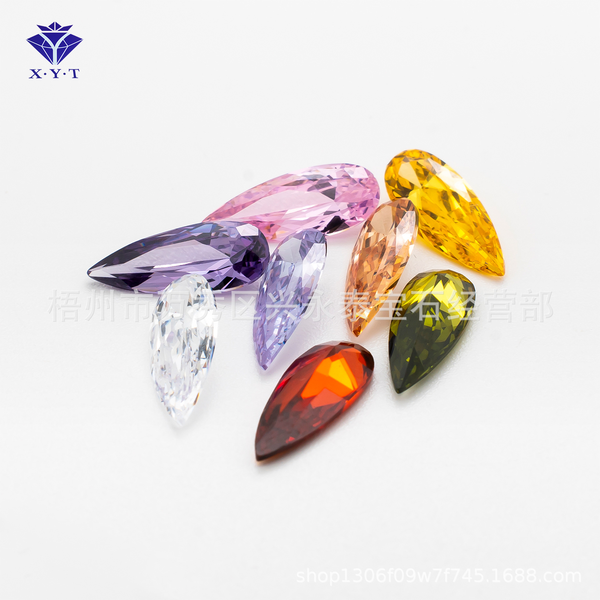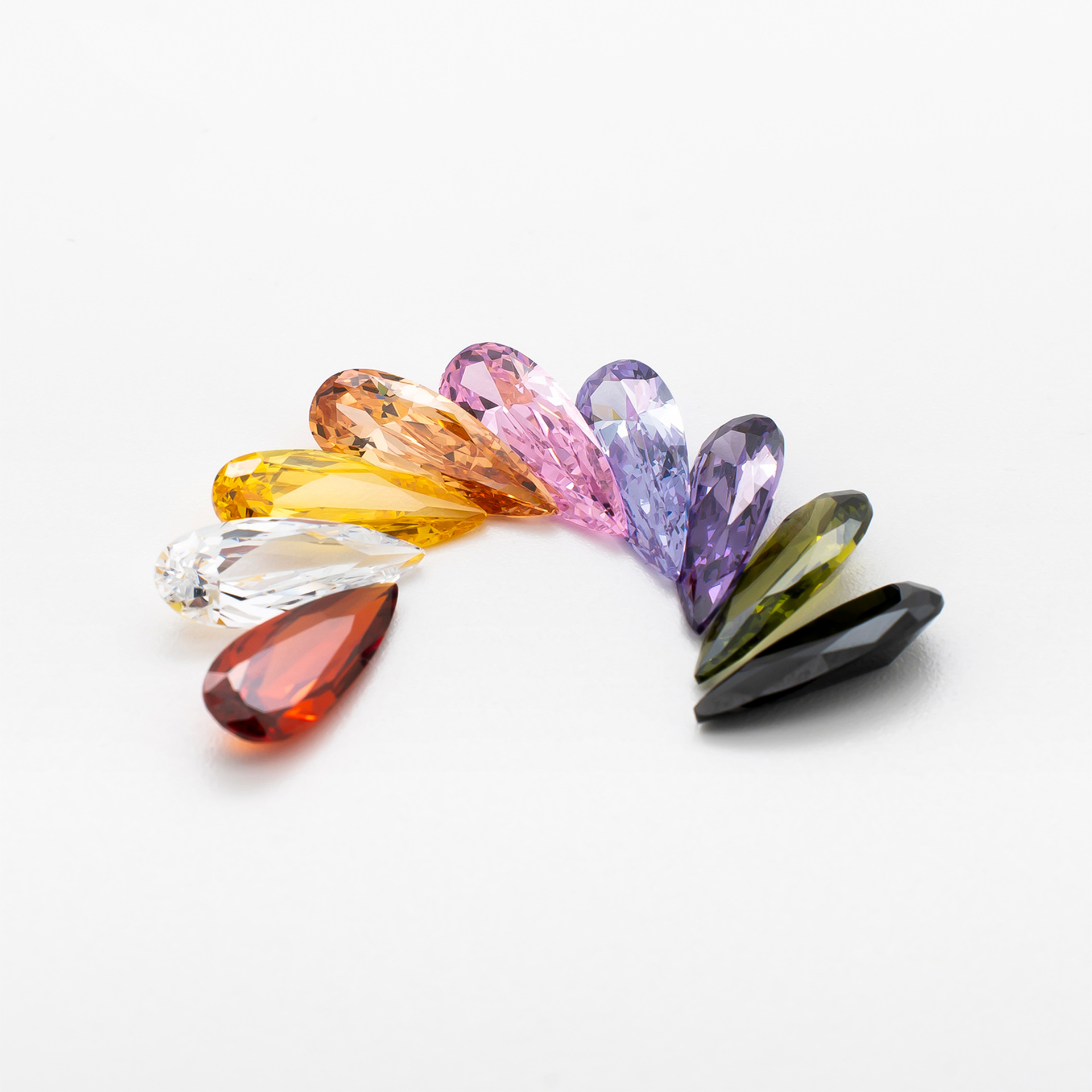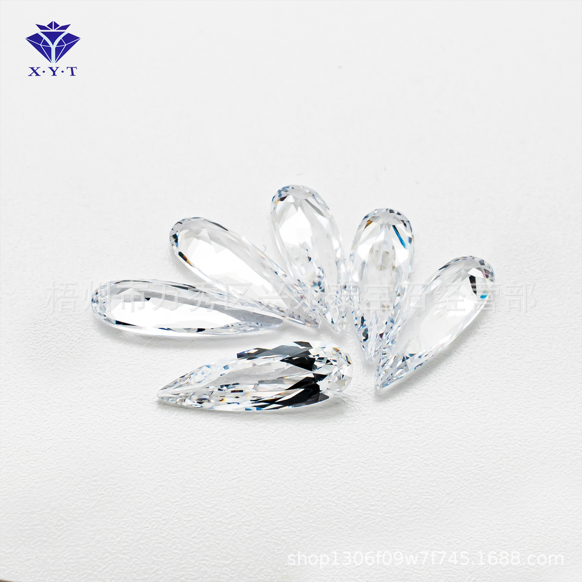 Extended Drop-Shaped White Colored Zircon Ring Surface Pointed Bottom Drop Gemstone Loose Stone Artificial Synthetic Cubic Zirconia