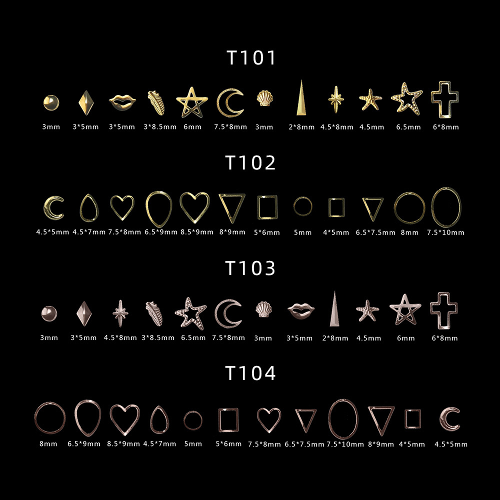 Factory Direct Sales Nail Art Rivet Jewelry Special-Shaped Nails Gold and Silver Mixed Alloy Accessories Exquisite Shiny Light