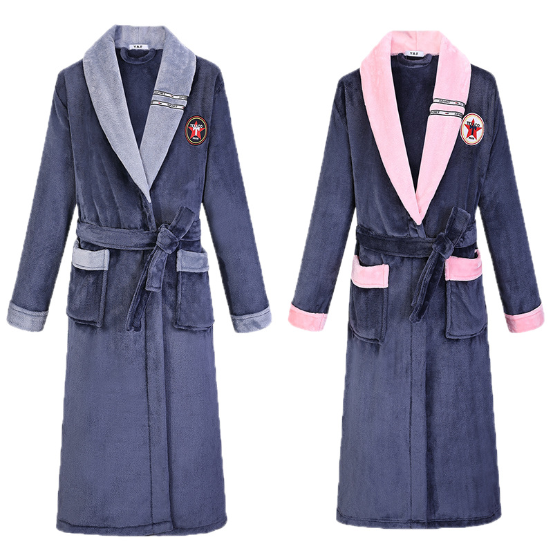 Factory Direct Supply New Winter Pajamas Thickened Long Coral Fleece Nightgown Men's Flannel Bathrobe Lovers Bathrobe