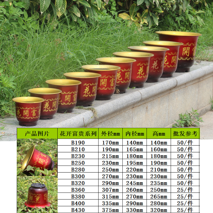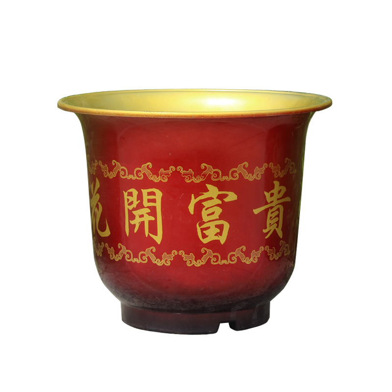 Factory wholesale large red and black round thick flower blooming rich paint plastic flowerpot festive New Year potted plants