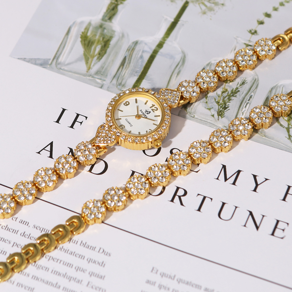 Cross-Border Popular Diamond-Encrusted Women's Gold Bracelet Watch Cross-Border Popular Set Adult Watch Manufacturer Direct Sales Wholesale