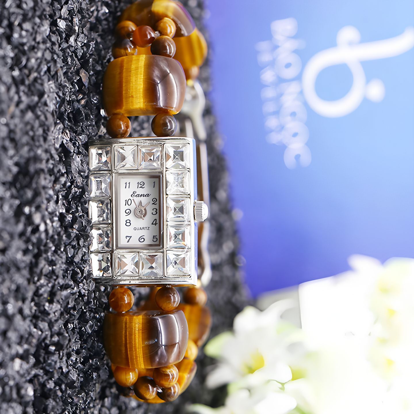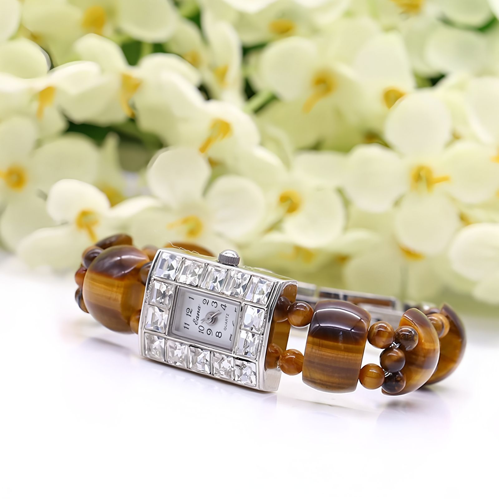 Eana Brand Watch Women's Watch Diamond Square Tiger Eye Stone Bracelet Watch Women's Watch Chinese Valentine's Day Gift Watch