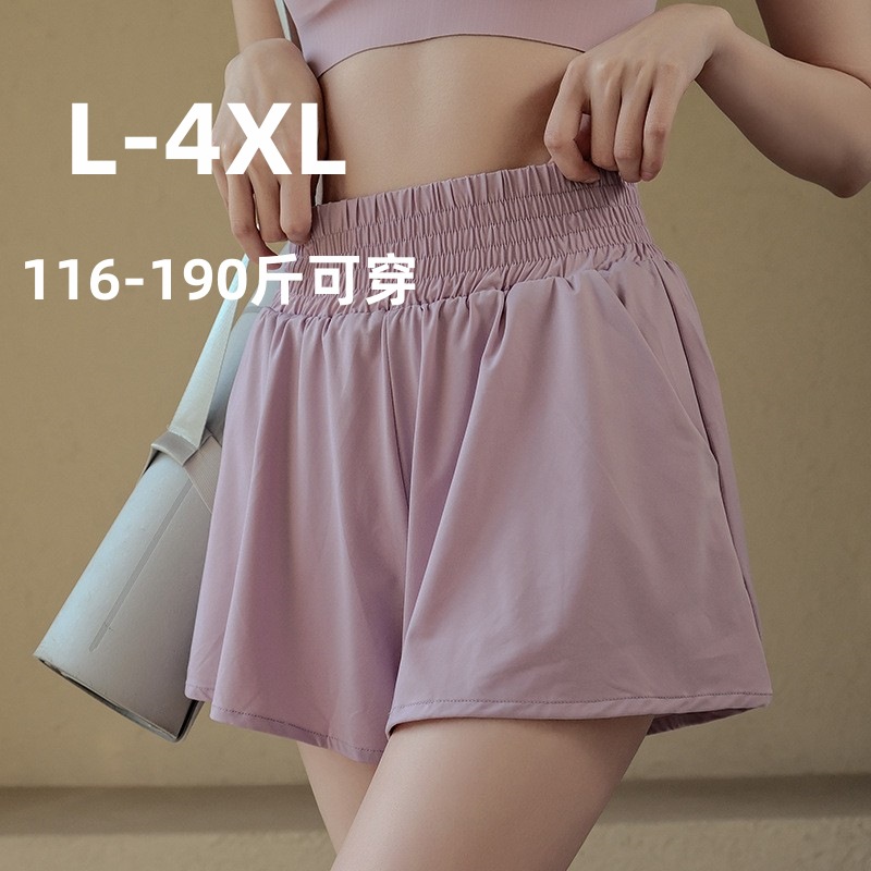 Fat Girls Fake Two-Piece Sports Shorts Women's Spring and Summer High Waist Abdomen-Tinting Quick-Dry Fitness Yoga Pants Large Size Anti-Light Skirt Culottes