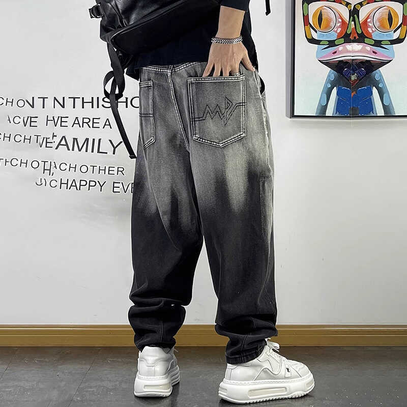 Fat man plus fat plus size 300kg tide brand gradient washed jeans men's loose feet casual Harlan pants