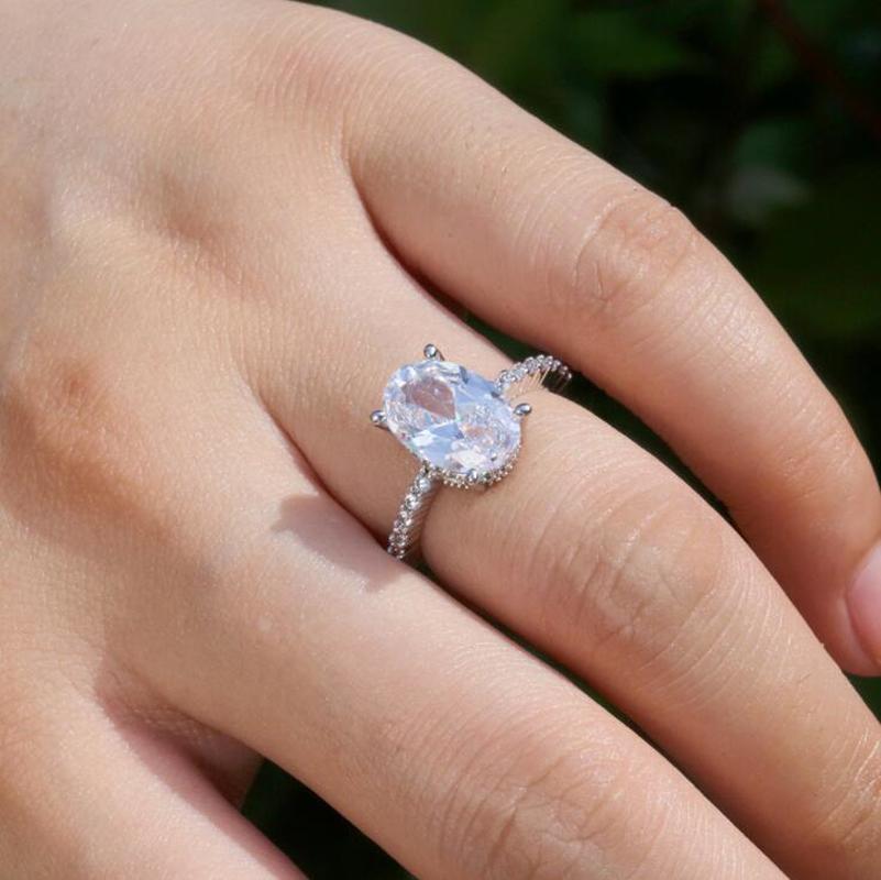 Fei Language Light Luxury Simple Cold Style Personalized Egg-shaped Crystal Zircon Women Fashion Silver All-match Engagement Ring