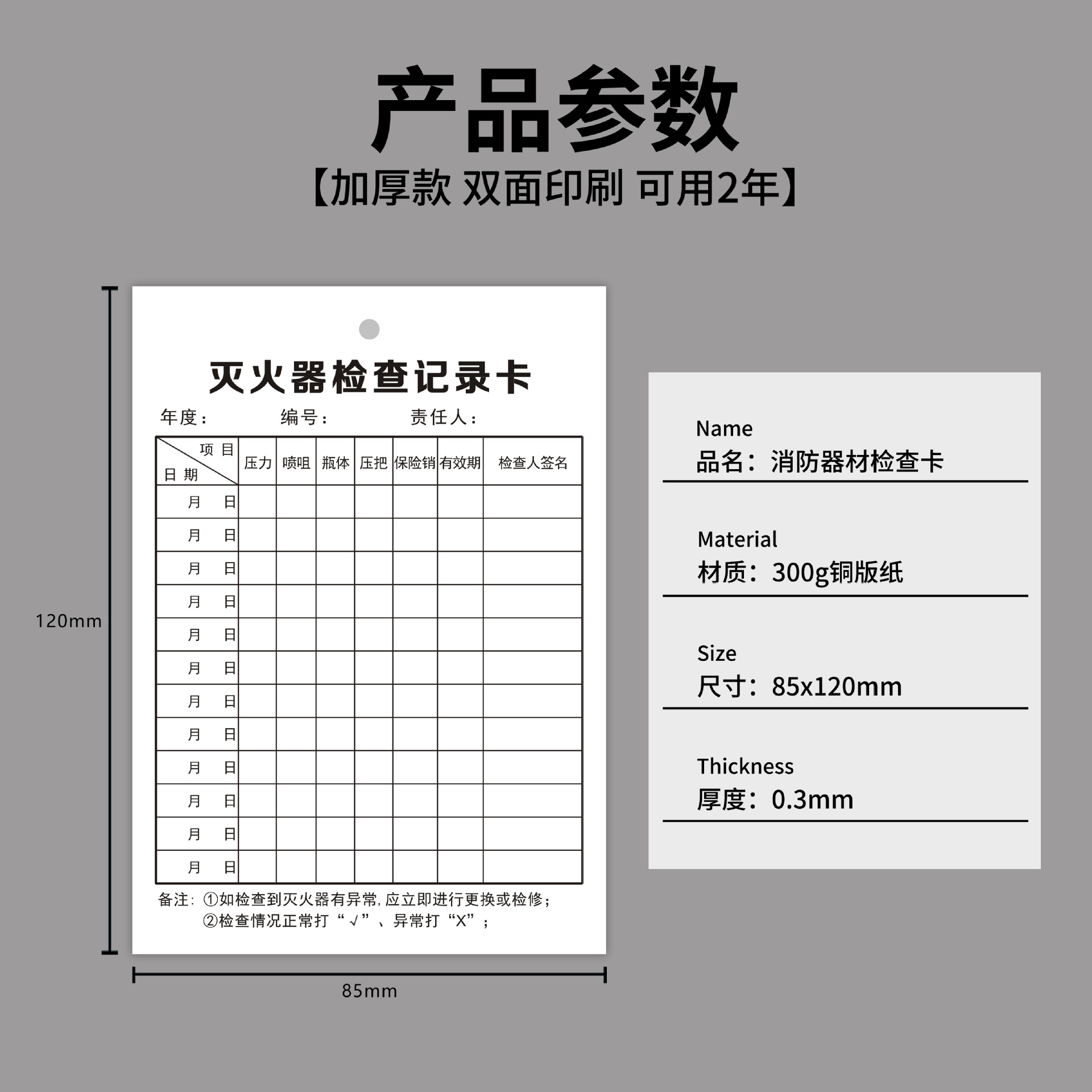 Fire fighting equipment, fire extinguisher, fire hydrant inspection card, registration record card, monthly inspection point inspection equipment record table, double-sided