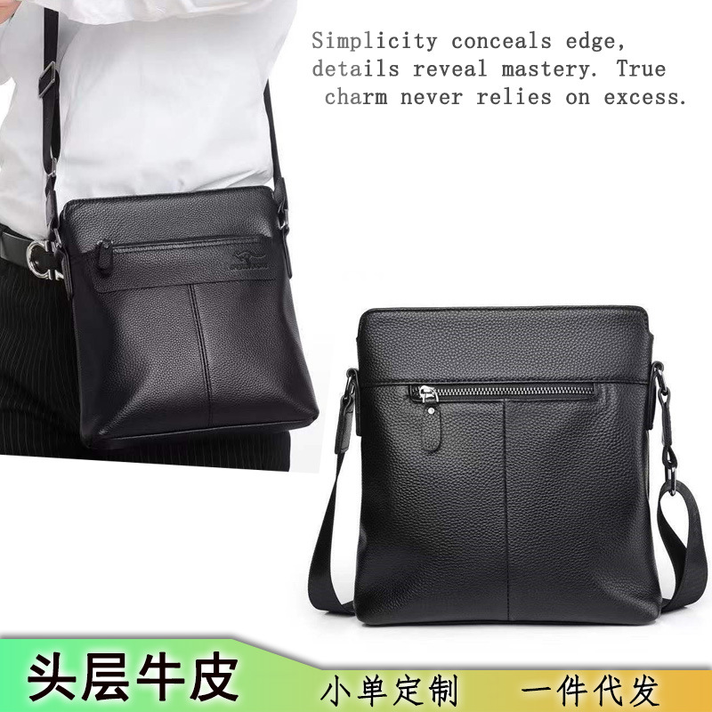 First-Layer Cowhide Crossbody Bag, Fashionable Genuine Leather Men's Shoulder Bag, Large-Capacity Casual Men's Bag, Men's Trendy Men's Bag