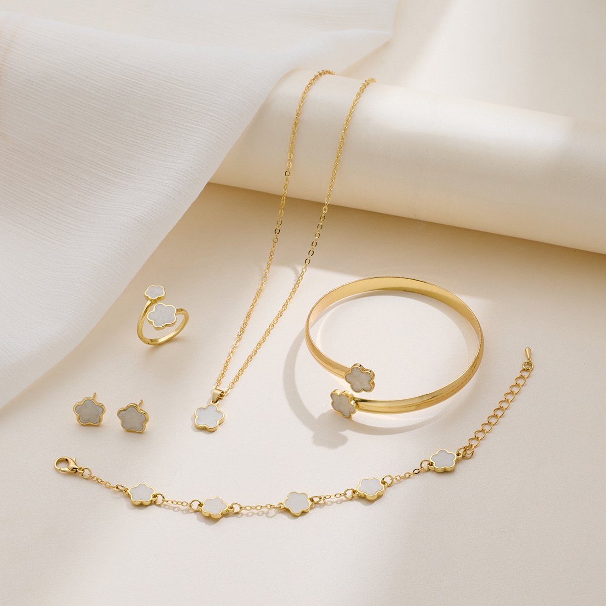 Five-Leaf Clover Five-Piece Set European and American Cross-Border New Lucky Flower Bracelet Bracelet Necklace Ring Earrings Set Versatile Women
