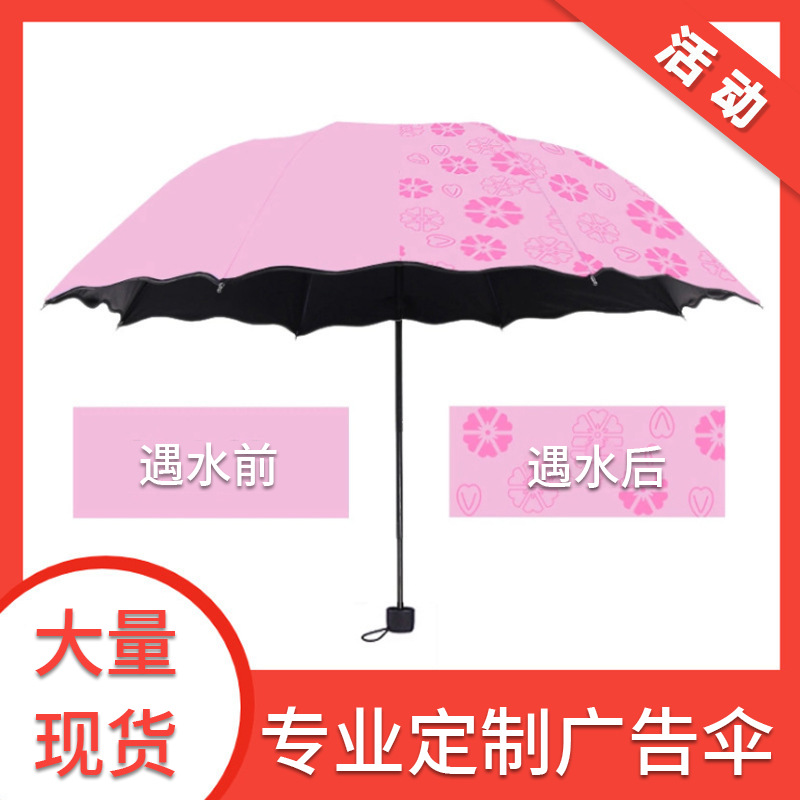 定logo男女广告防晒太阳伞折叠三折遮阳厂家批发遇水开花晴雨伞