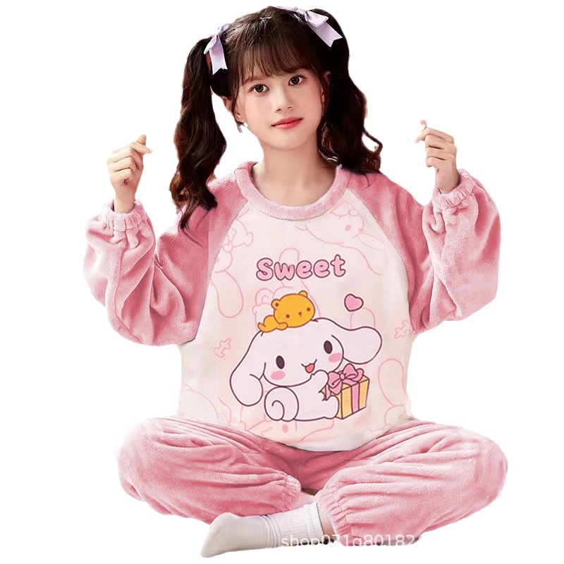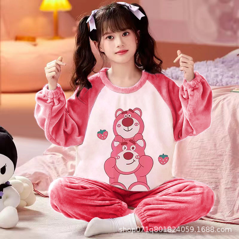 Flannel Pajamas Girls Autumn and Winter Children's Girls fleece-lined Baby New Style Girls Big Children's Home Clothes suit